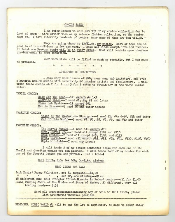 Comic World (1962 Robert Jennings) Fanzine 3 VG- 3.5