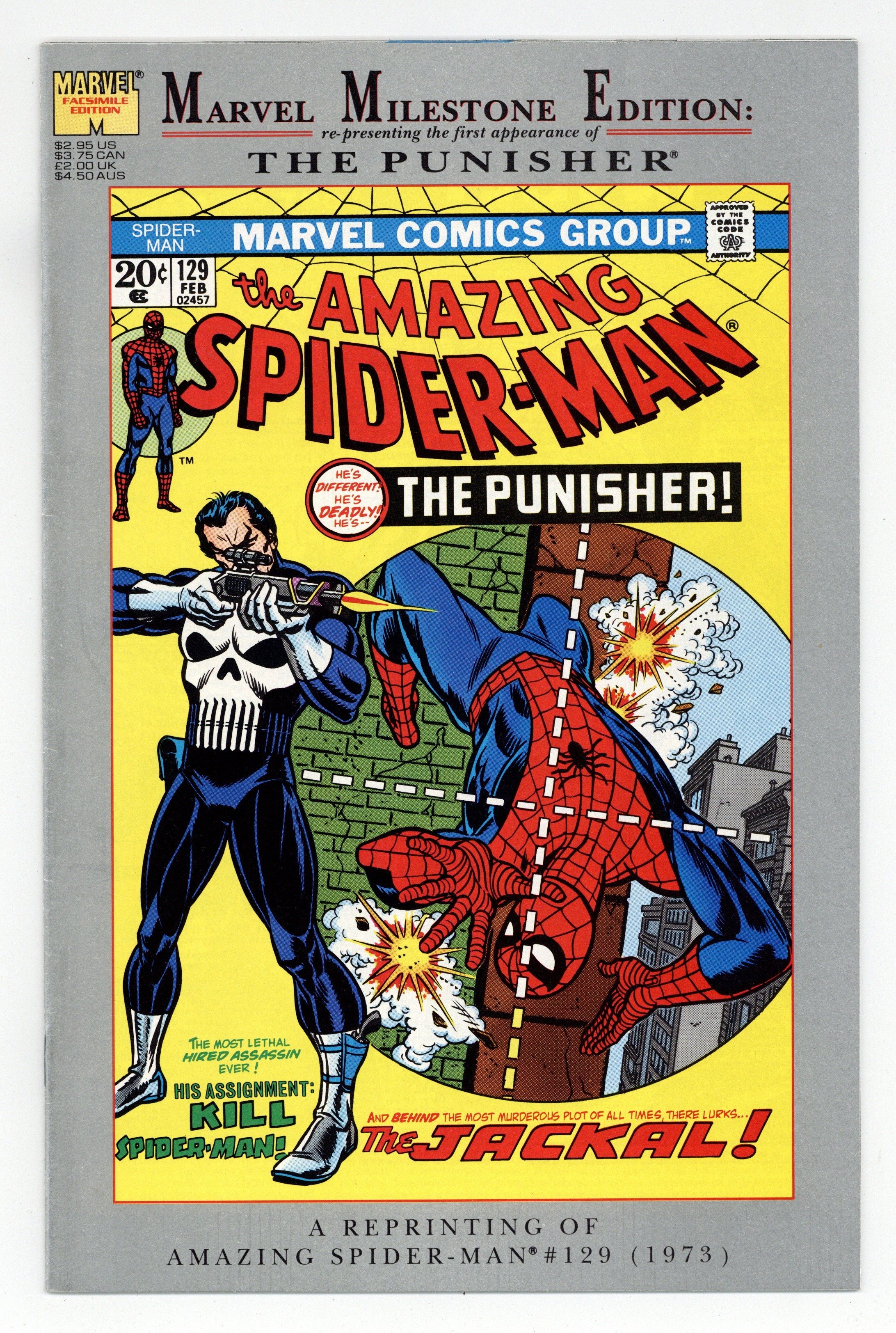 Ended Sep 15 2025 Bid History 4 bids Winning Bid $10 Reprints Amazing Spider-Man 129 (1st Punisher). Says "Second Printing" in indicia, but it's actually the first printing as a Marvel Milestone Edition. Cover price $2.95. Grade: VF 8.0 explanation of grade Condition: Used (collectible)