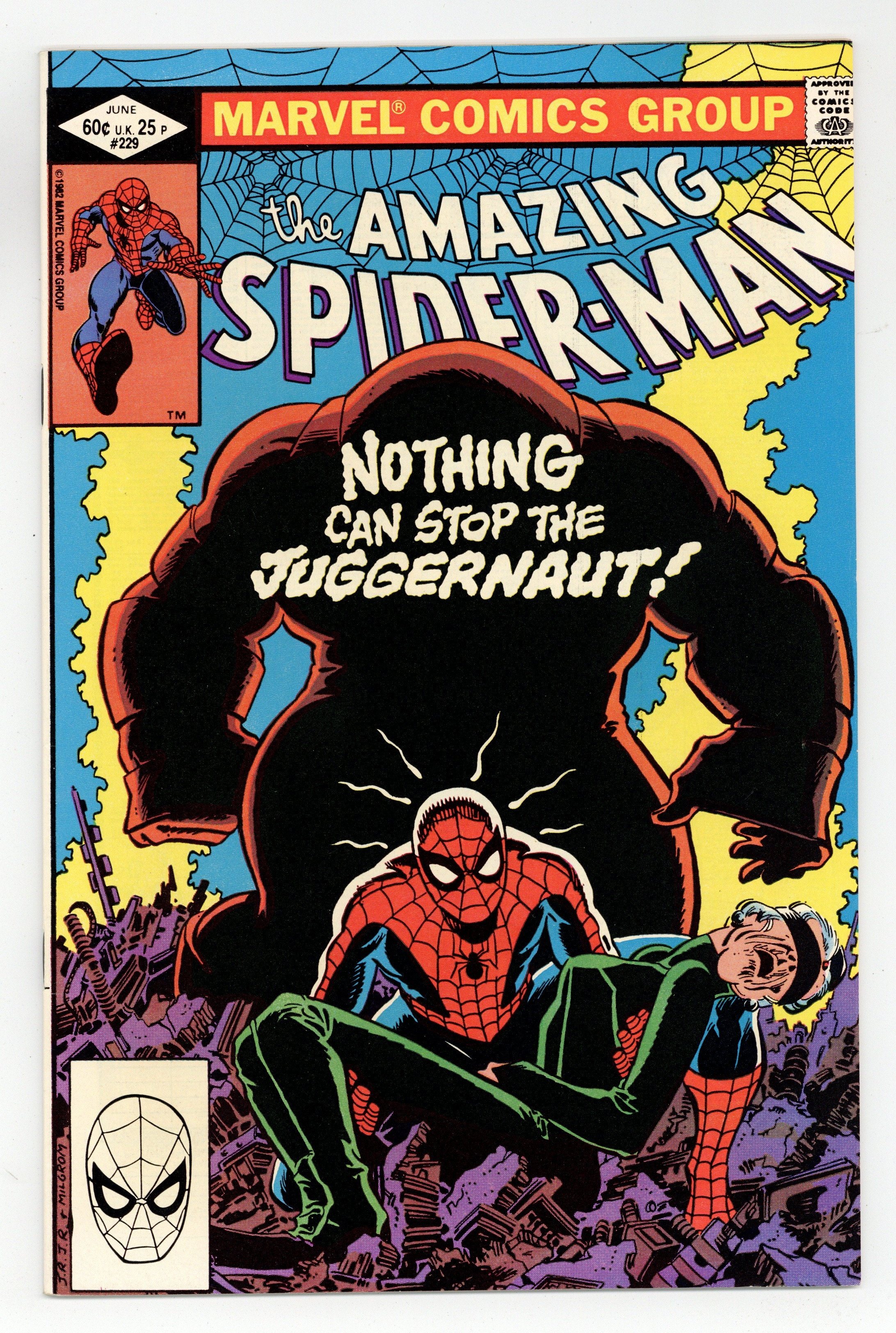 Ends Dec 8 7:20 PM CST Bid History 7 bids Current Bid $19 Your Secret Max Bid If you'd like to bid, please log in or register. Direct Edition. Nothing Can Stop the Juggernaut!" Part 1 of 2. Script by Roger Stern. Art by John Romita Jr. (breakdowns) and Jim Mooney (finishes). Cover by John Romita Jr. and Al Milgrom. One of the classic Spider-Man stories of the bronze age! Black Tom Cassidy is tired of losing to the X-Men and thinks that having Madame Webs powers on his side would reverse his fortune! So he sends his indestructible friend to grab her! But Madame Web foresees the danger and calls her wall-crawling friend to save her! And in the middle of Manhattan, the Amazing Spider-Man meets the Juggernaut...for the life of Madame Web! This may become one of the web-slingers greatest victories...or one of his bitterest defeats. A two-part masterpiece! Cameo appearances by Wong, J. Jonah Jameson, Joe Robertson, and Betty Brant Leeds. (Notes: The Juggernaut previously appeared in Spider-Woman 38. Betty Brant was last seen in Amazing Spider-Man 197. This story was reprinted in 1989 in the trade paperback: The Sensational Spider-Man -- Nothing Can Stop the Juggernaut; and also in Spider-Man Magazine 3.) 36 pgs. Cover price $0.60. Grade: VF+ 8.5 explanation of grade Condition: Used (collectible)
