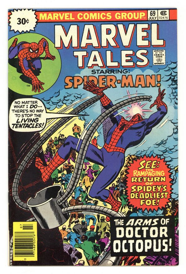 30 cent variant. Reprints Amazing Spider-Man #88. Doctor Octopus gets a grip on Spider-Man in "The Arms of Doctor Octopus!" Script by Stan Lee; pencils by John Romita Sr.; inks by Jim Mooney. Romita cover. Cover price $0.30. Grade: FN- 5.5 explanation of grade Condition: Used (collectible)