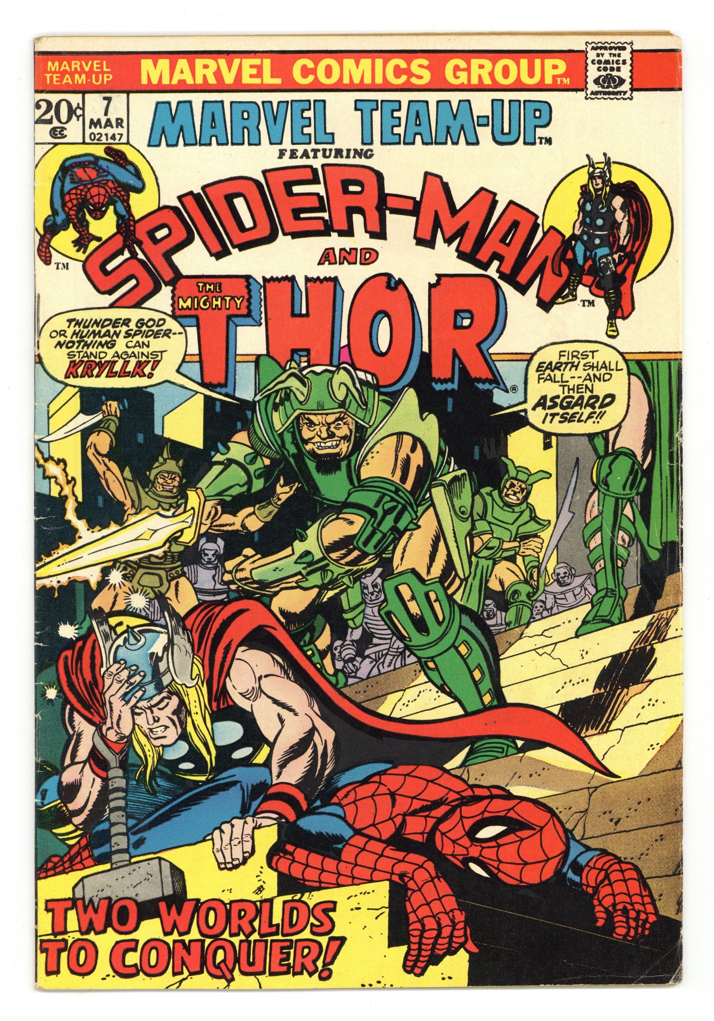 National Diamond Sales Advertisement Insert Variant. Spider-Man and Thor star in "A Hitch in Time!" Script by Gerry Conway. Pencils by Ross Andru. Inks by Jim Mooney. Cover by Gil Kane and Frank Giacoia. Spider-Man and Thor battle Kryllk, the Asgardian troll, in a battle that takes our heroes from the asteroid belt to majestic Asgard! Cameo appearances by Fandral, Iron Man, the Scarlet Witch, and the Watcher. 32 pages. Cover price $0.20. Cover price $0.20. Grade: VG- 3.5 explanation of grade Condition: Used (collectible)
