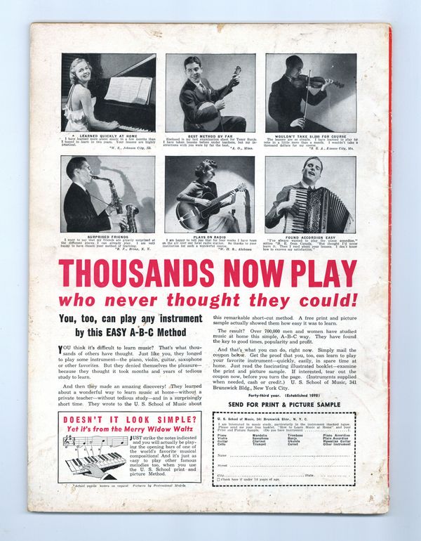 SOLD$28.00- Front cover detached 15%. Back cover detached 5%. Water damage: Slight. Staple rust: Slight.