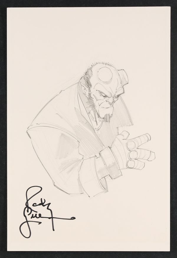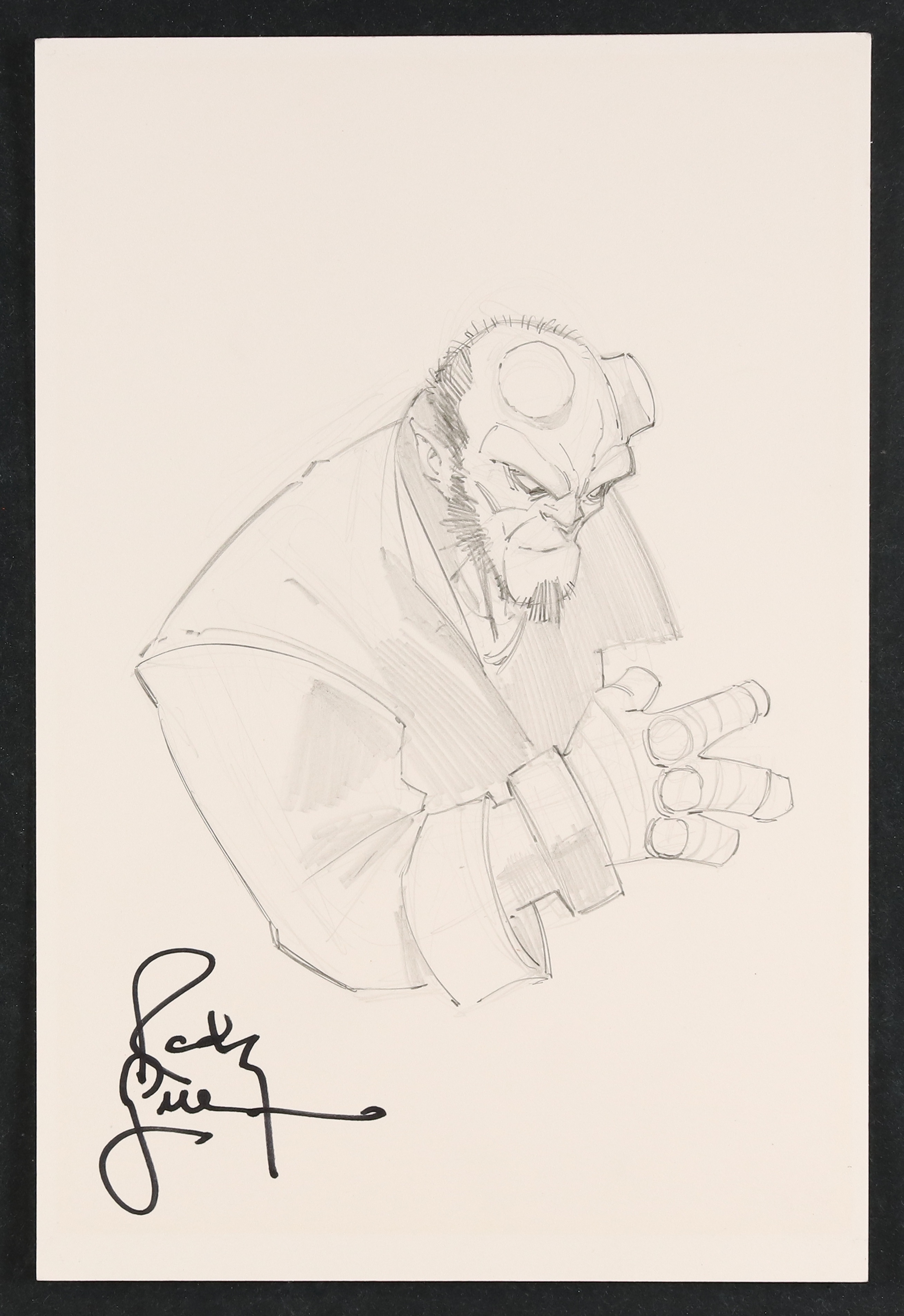 Hellboy Sketch by Randy Greene- The longtime Witchblade artist turns in a great rendition of The Right Hand of Doom! Signed by the artist. Pencil on backing board. 7" x 10 1/2".