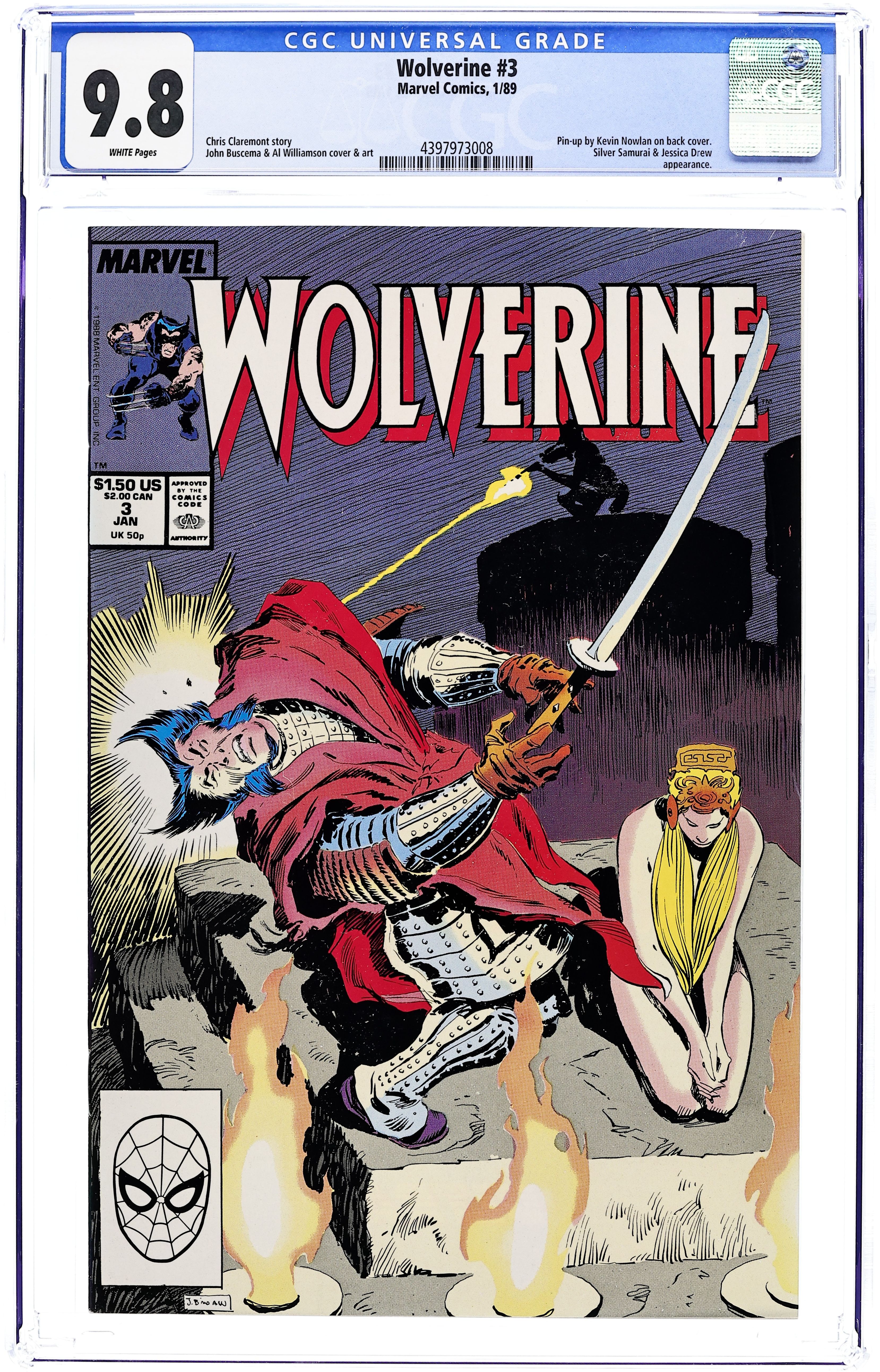 Ended Oct 16 2025 Bid History 11 bids Winning Bid $75 Direct Edition. Part 3 of 3 - "The Black Blade!" Written by Chris Claremont. Art by John Buscema and Al Williamson. Oh no, Wolverine is possessed by the Black Blade and is about to sacrifice Jessica Drew, unless McCabe and Silver Samurai can stop him. Kevin Nowlan art on back cover. 32 pages, FC Cover price $1.50. Grade: CGC 9.8 explanation of grade Condition: Used (collectible)