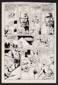 A great page from Flash's chapter in the classic Invasion! crossover. With the metahuman resistance spread thin, Flash and Chunk are dispatched to Cuba to fight back against the shapeshifting Durlans' schemes- which involved kidnapping and replacing Fidel Castro! A neat page as Flash swaps out the imposter for the real deal in the second panel, forcing him to shapeshift and then bringing him back out on stage to reveal to the press. Pencil and ink on DC comics art board. 11" X 16 1/4".