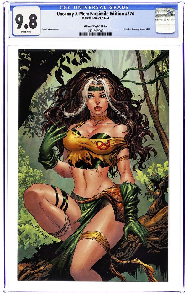 Ended Oct 17 2025 Bid History 12 bids Winning Bid $50 Comics Illuminati (Unknown Comic Books, Comic Trader, and Sleeping Giant) Exclusive Virgin Cover by Tyler Kirkham. Written by Chris Claremont; Jim Lee. Art by Jim Lee. Sparks fly in the Savage Land - between Rogue and Magneto! The powerhouse X-Man joins forces with their greatest enemy, but could there be something more between them than a mere alliance? They'll fight alongside Ka-Zar and Zabu against the wicked Zaladane, who has erected six towers in the Savage Land and is now in sync with Earth's magnetic field. With her newfound power, she has scrambled all communication in the area - and the effects of her mad quest are already felt far away! The epic battle features dinosaurs, Mutates, Nick Fury - and Rogue in her iconic Savage Land ensemble, courtesy of superstar artist Jim Lee! It's one of the all-time great Marvel comic books, boldly re-presented in its original form, ads and all! Reprinting UNCANNY X-MEN (1981) #274. 32 pages, full color. Rated T Grade: CGC 9.8 explanation of grade Condition: Used (collectible)