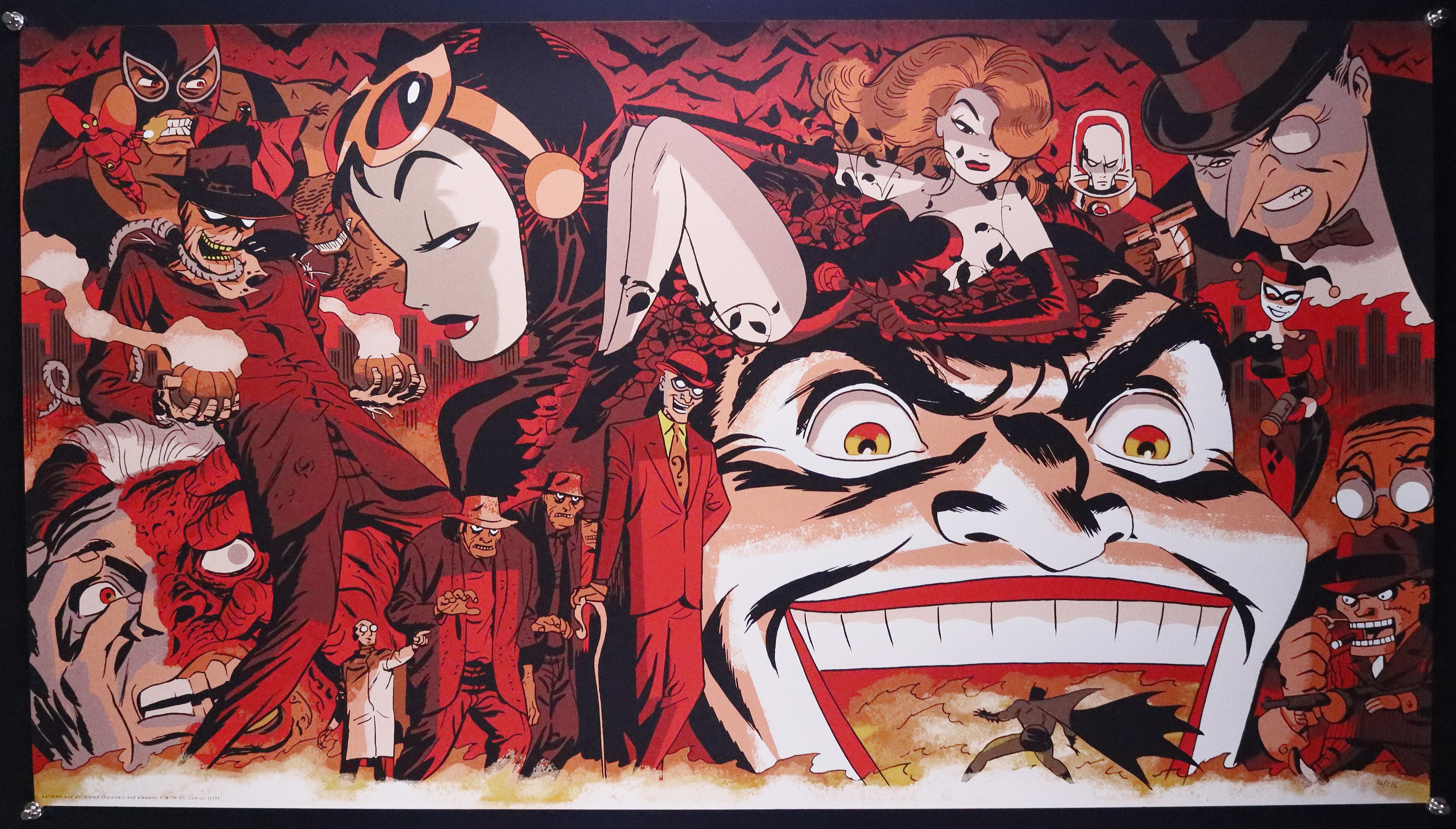 Produced by Mondo and printed by Lady Lazarus Press in celebration of Batman's 80th anniversary. Numbered 76/275. 36" x 20". NOTE: Print will ship rolled.