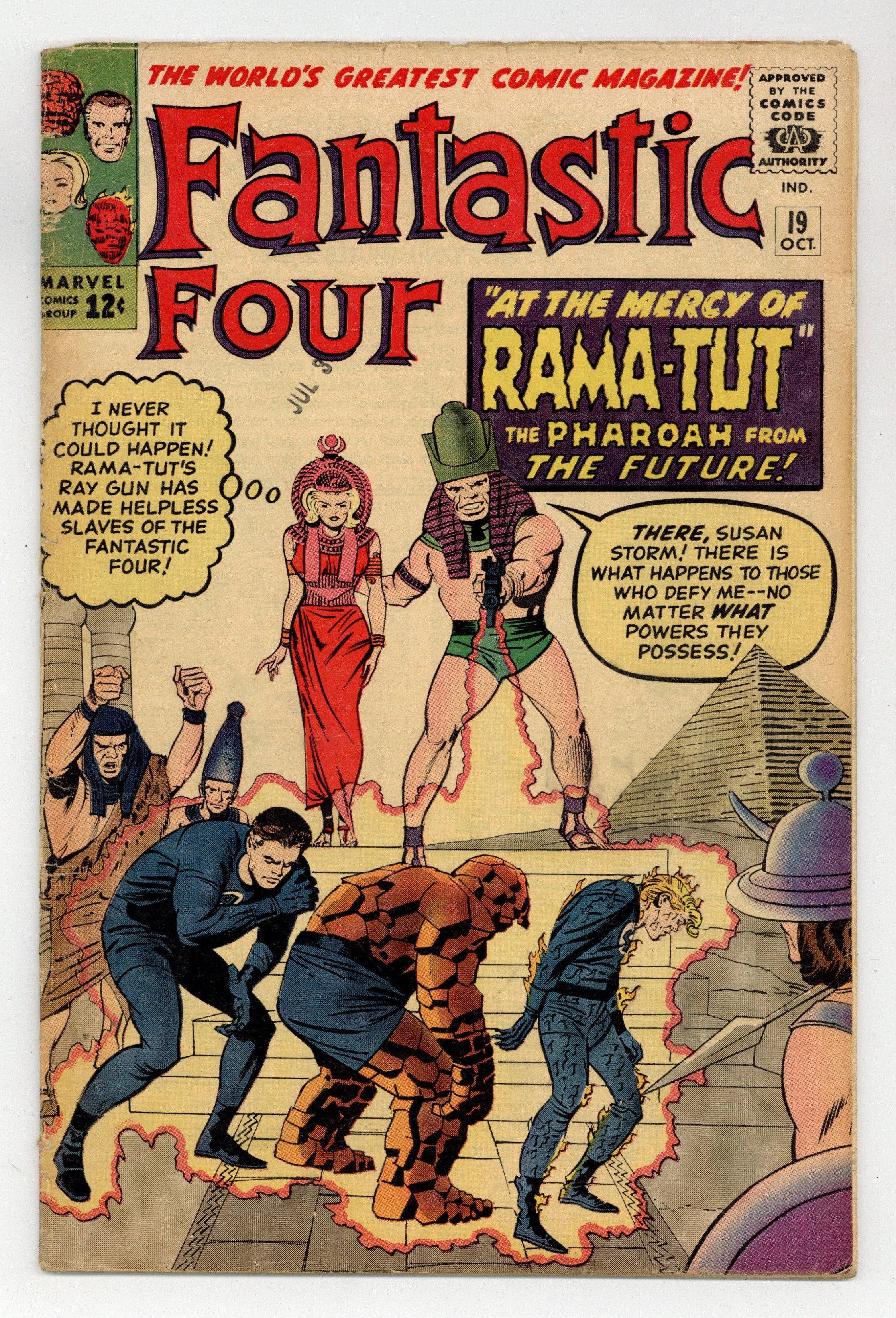 Cover pencils by Jack Kirby, inks by Paul Reinman. First appearance of Pharaoh Rama-Tut in "Prisoners of the Pharoah!, script by Stan Lee, pencils by Jack Kirby, inks by Dick Ayers; The Fantastic Four return to Ancient Egypt to try to find a cure for Alicia's blindness and are met by Rama-Tut, a time traveler from the year 3000. Cameos by the Mole Man, the Puppet Master, the Super-Skrull, and Doctor Doom. Letter to the editor from comics writer Steve Gerber. The events of this very issue can be seen from different points of view in the pages of Doctor Strange (1974 2nd Series) #53 and Avengers West Coast (1985) #22. 36 pgs. $0.12. Cover price $0.12. Grade: GD/VG 3.0 explanation of grade Condition: Used (collectible)