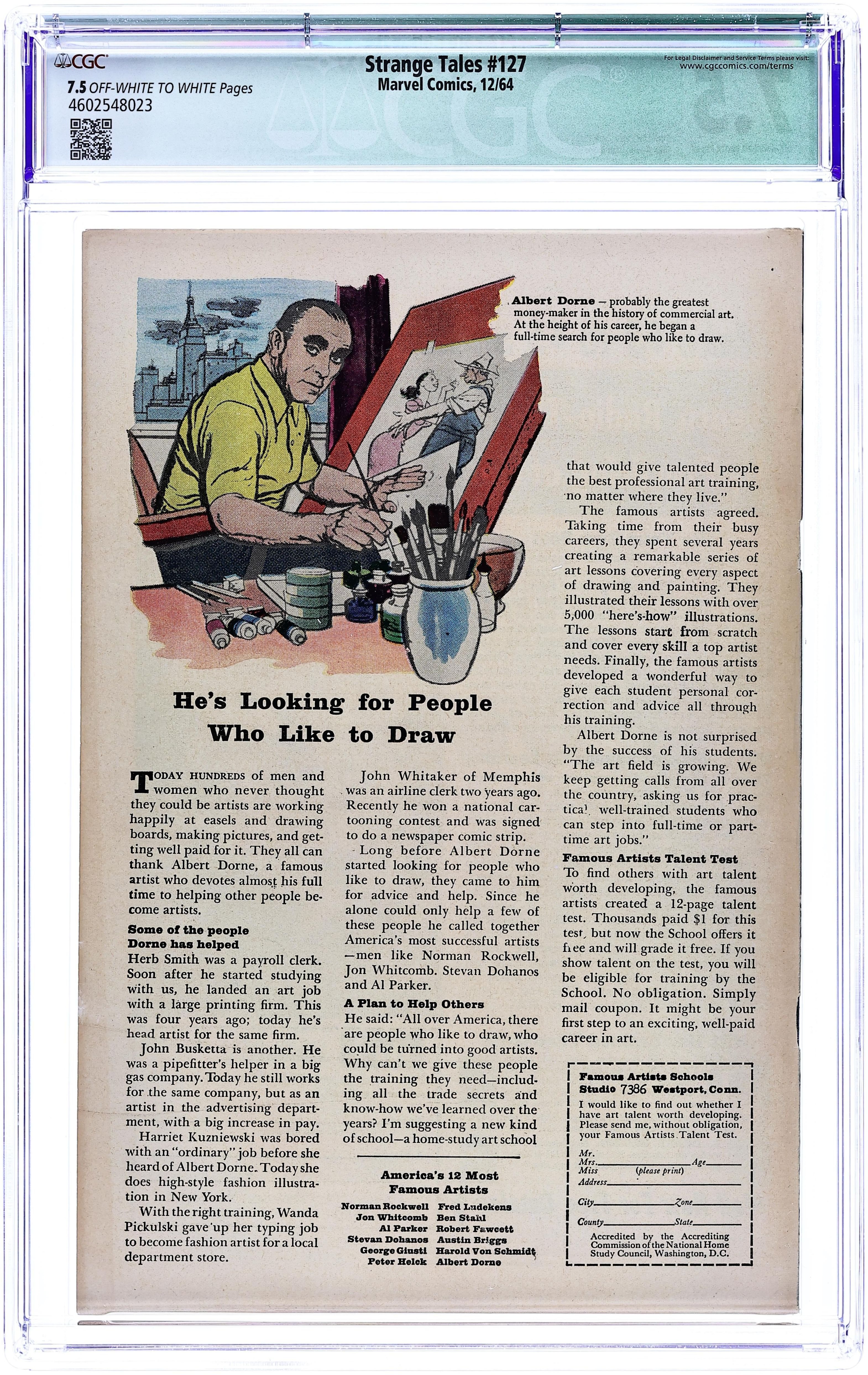 Tags: Marvel Legacy Numbering: Doctor Strange (part 127), Fantastic FourStrange Tales (1951 1st Series) 127 CGC 7.5 Qualified