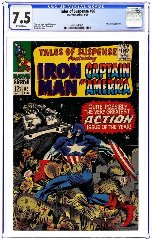 Tags: Marvel Legacy Numbering: Captain America (part 86), Marvel Legacy Numbering: Tales of Suspense (part 86), Captain America, Iron ManTales of Suspense (1959) 86 CGC 7.5