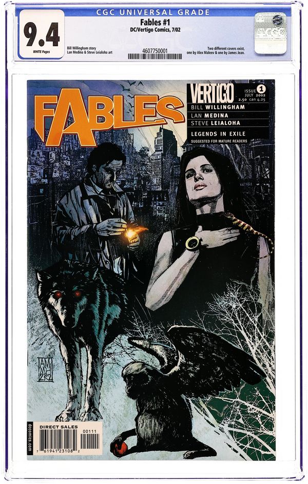 WRITTEN BY BILL WILLINGHAM; ART BY LAN MEDINA AND STEVE LEIALOHA. A new VERTIGO series takes a decidedly dark spin on familiar fairy tale characters. Led by Snow White, a reformed Bigby Wolf, and a slew of others, the secret community of Fabletown is adjusting to life among the "mundanes." But this is no fairy tale, and when Snow White's estranged sister, Rose Red, goes missing ? her apartment a grizzly, bloody scene ? it's up to her sister and Mr. Wolf to find the culprit. But the question remains, will they find Rose intact, or will the cryptic message on her wall come true: "No More Happily Ever After?" MATURE READERS FC, 32 PG. Cover price $2.50. Grade: CGC 9.4 explanation of grade Condition: Used (collectible)