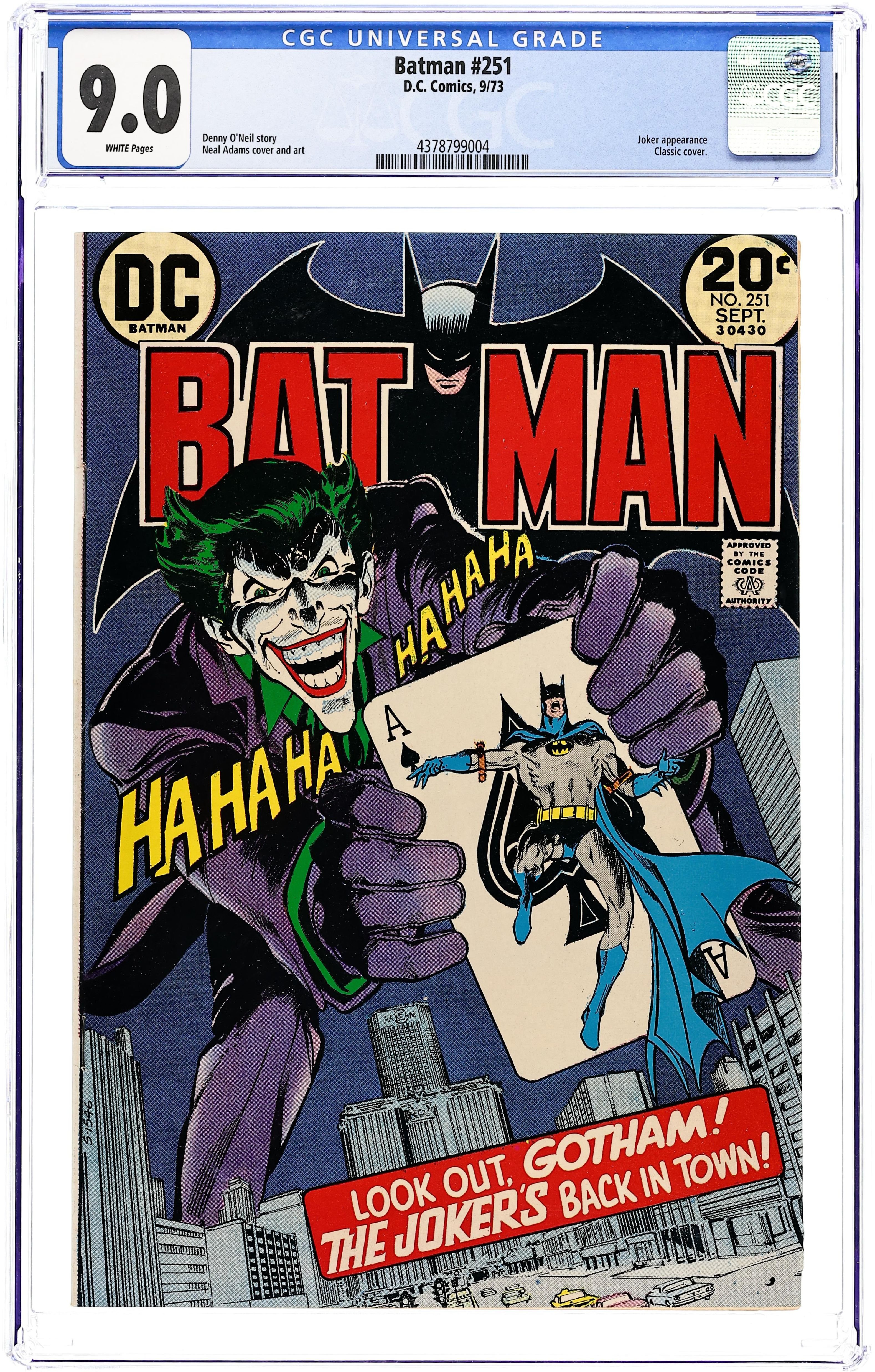 Ended Oct 14 2025 Bid History 20 bids Winning Bid $1,235 Cover art by Neal Adams. "The Joker's Five-Way Revenge!", script by Denny O'Neil, art by Neal Adams; The Joker has set himself free from the Mental Hospital for the Criminally Insane Batman had him incarcerated in, and he is out for blood; Before he was sent away, knowing that one member of his previous gang had ratted him out to the police, he had vowed to murder all five of them; And only the Batman is capable of stopping him; Despite Batman's best efforts, the Joker is able to finish off nearly all of his hit list; Batman is only alerted after the first murder, when a grinning corpse is found in the mud just outside of Gotham City, and he goes to each of the former members of the Joker's gang individually to try to protect them. Plop! comic book ad. Champion Sports comic book ad. 36 Pages, Full Color. Cover price $0.20. Grade: CGC 9.0 explanation of grade Condition: Used (collectible)