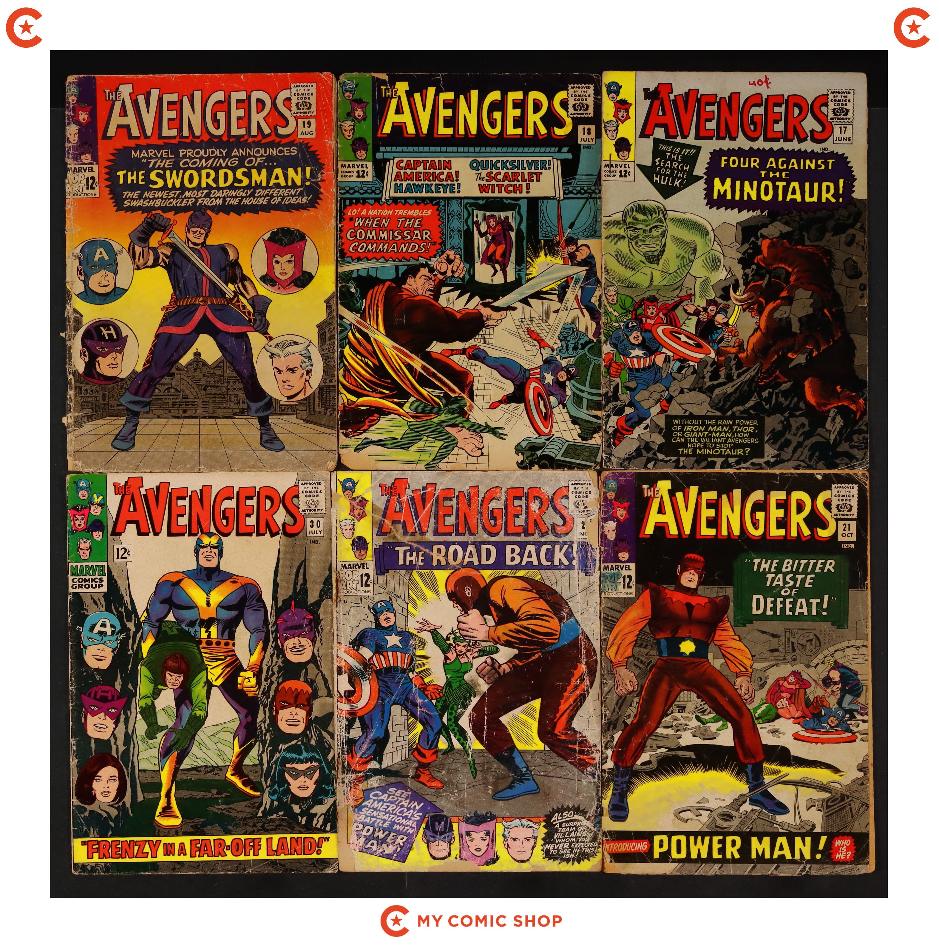 Issues 17-19, 21, 22, 30 of Avengers (1963 1st Series).Most will grade in the PR to FR range with #30 grading VG-.