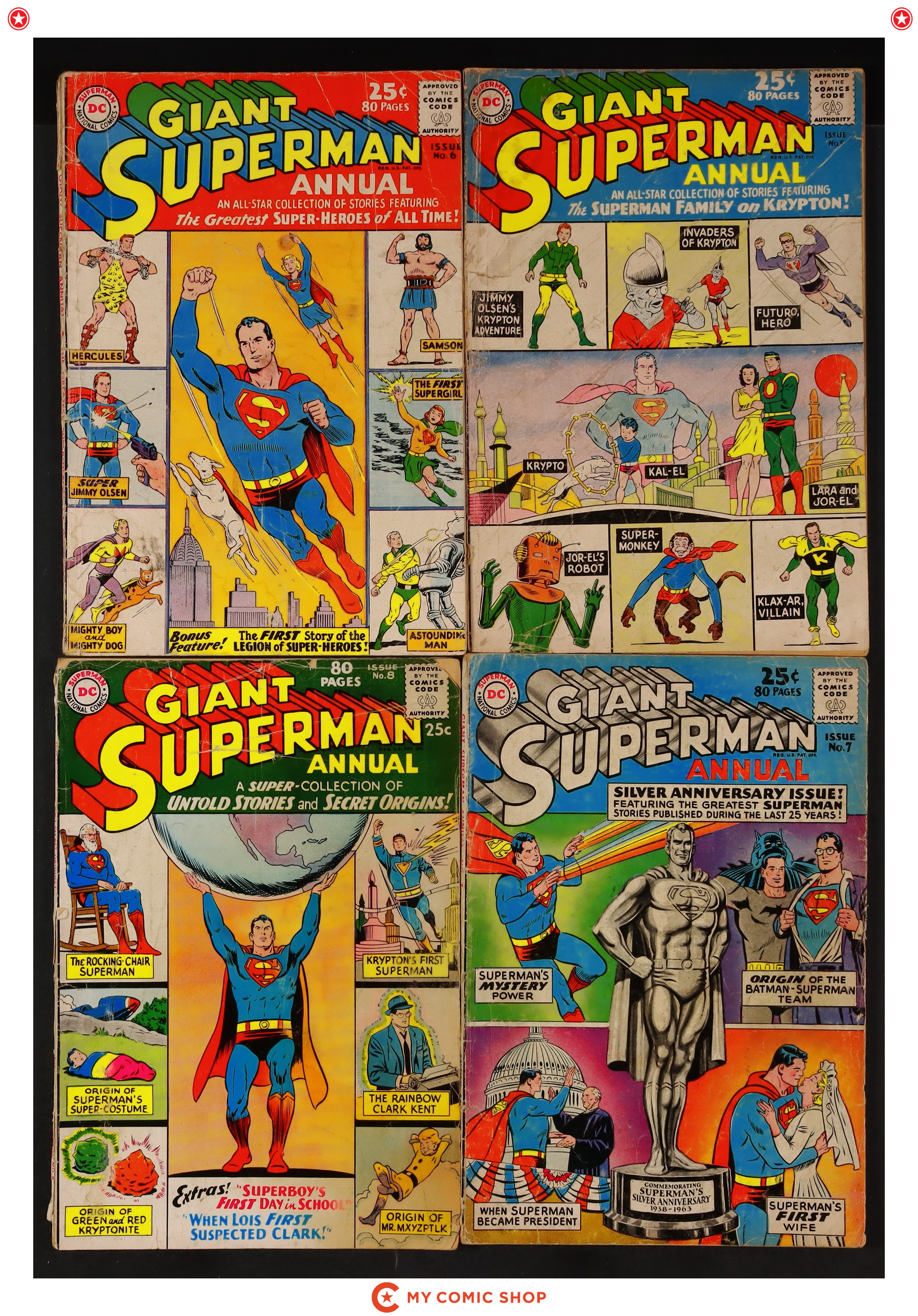 Issues 5, 6, 7, 8 of Superman (1939 1st Series) Annual. Most will grade in the FR to GD range.