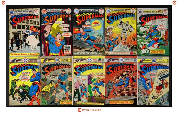 Issue 285-293, 297 of Superman (1939 1st Series). Most will grade in the VG to FN range with #292, #297 grading GD and #293 grading PR.