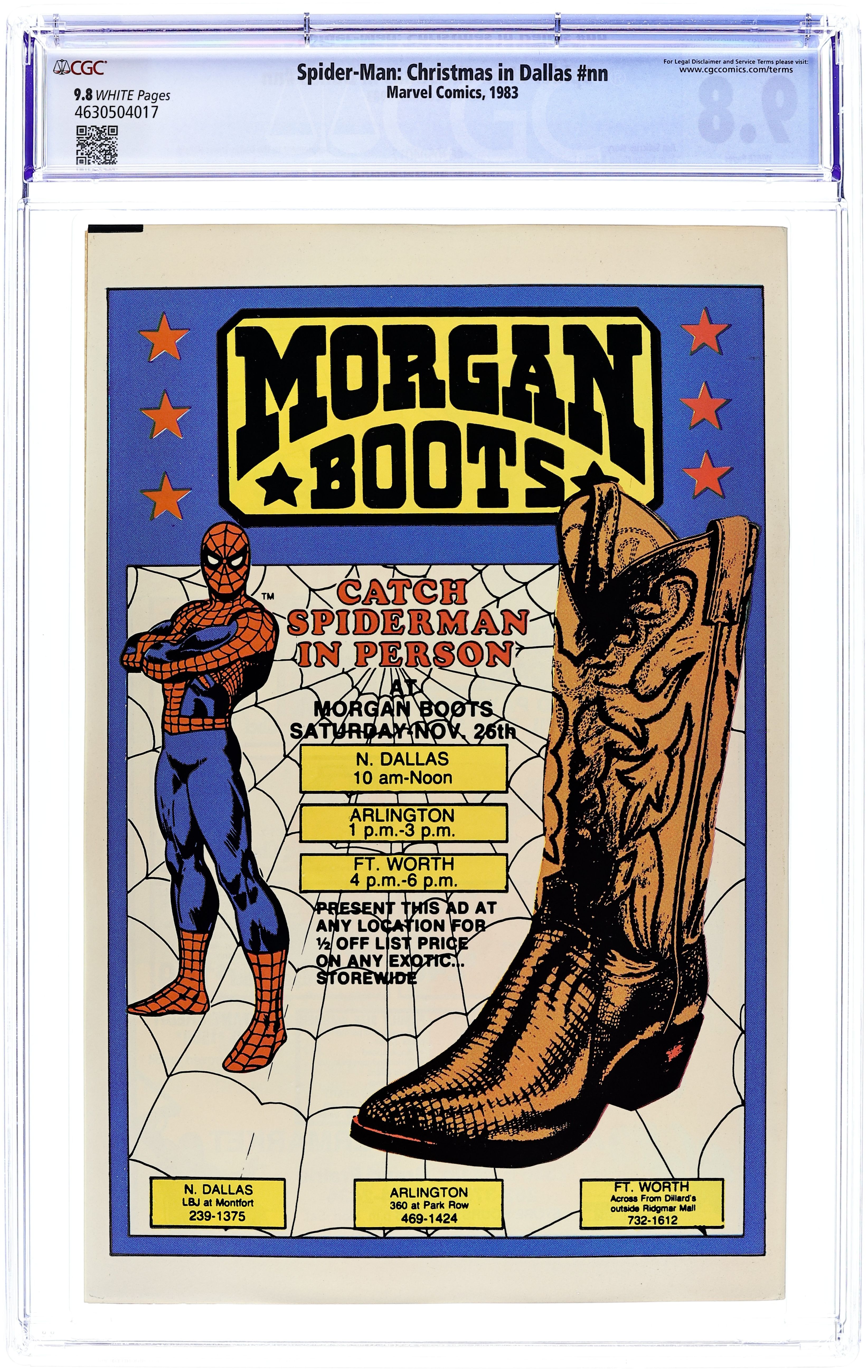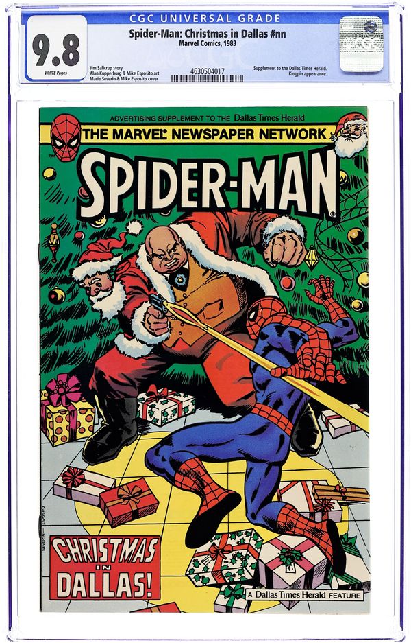 Starts Feb 9 Amazing Spider-Man Dallas Times Herald Giveaway (1983) Spider-Man battles Kingpin in a 16-page story, the "Christmas in Dallas!." 32 pages, full color, standard comic book format. Distributed as an advertising supplement to the Dallas Times Herald. Includes a retelling of Spider-Man's origin. Grade: CGC 9.8 explanation of grade Condition: Used (collectible)