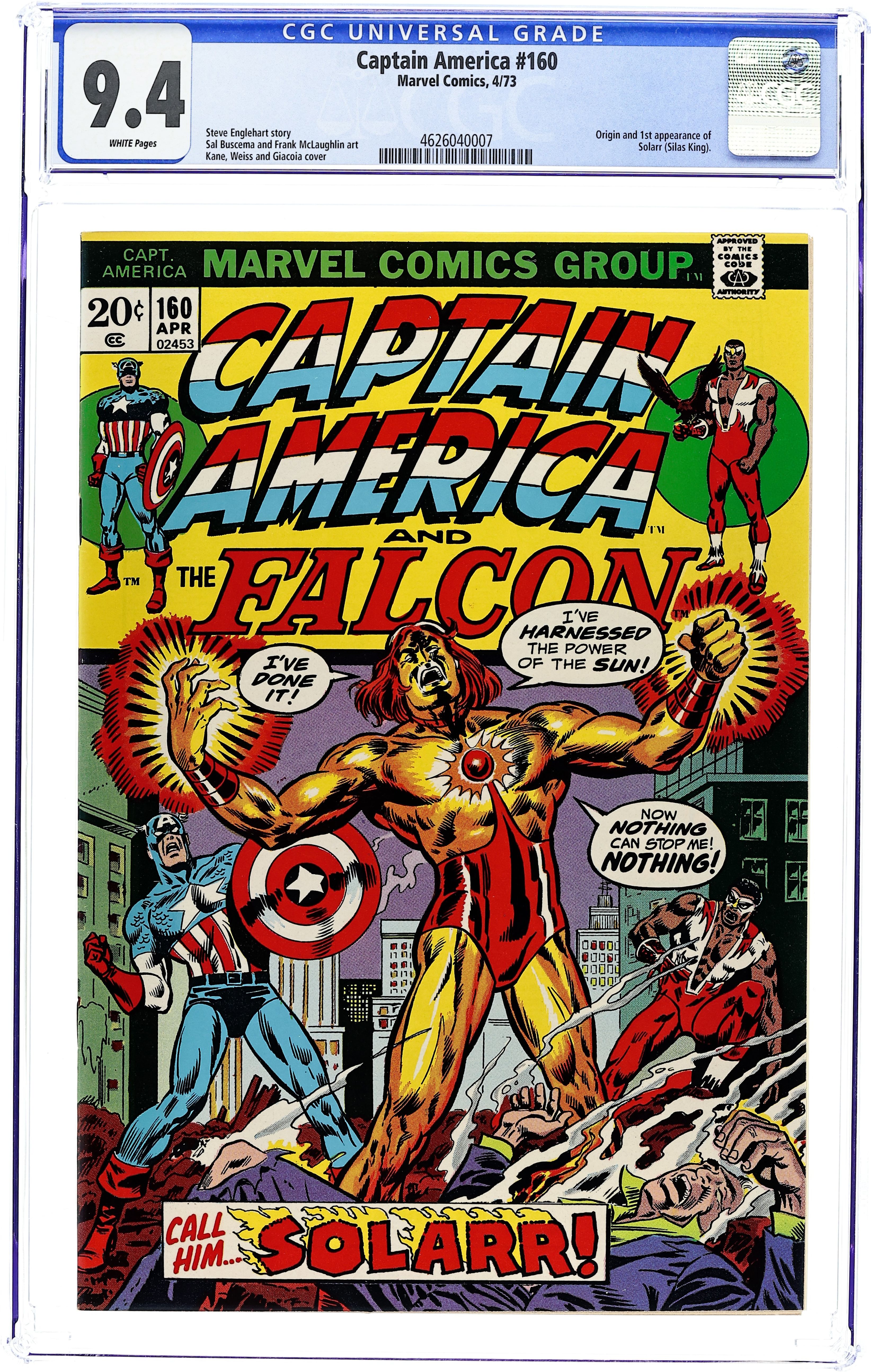 Tags: Marvel Legacy Numbering: Captain America (part 160), Captain AmericaCaptain America (1968 1st Series) 160 CGC 9.4