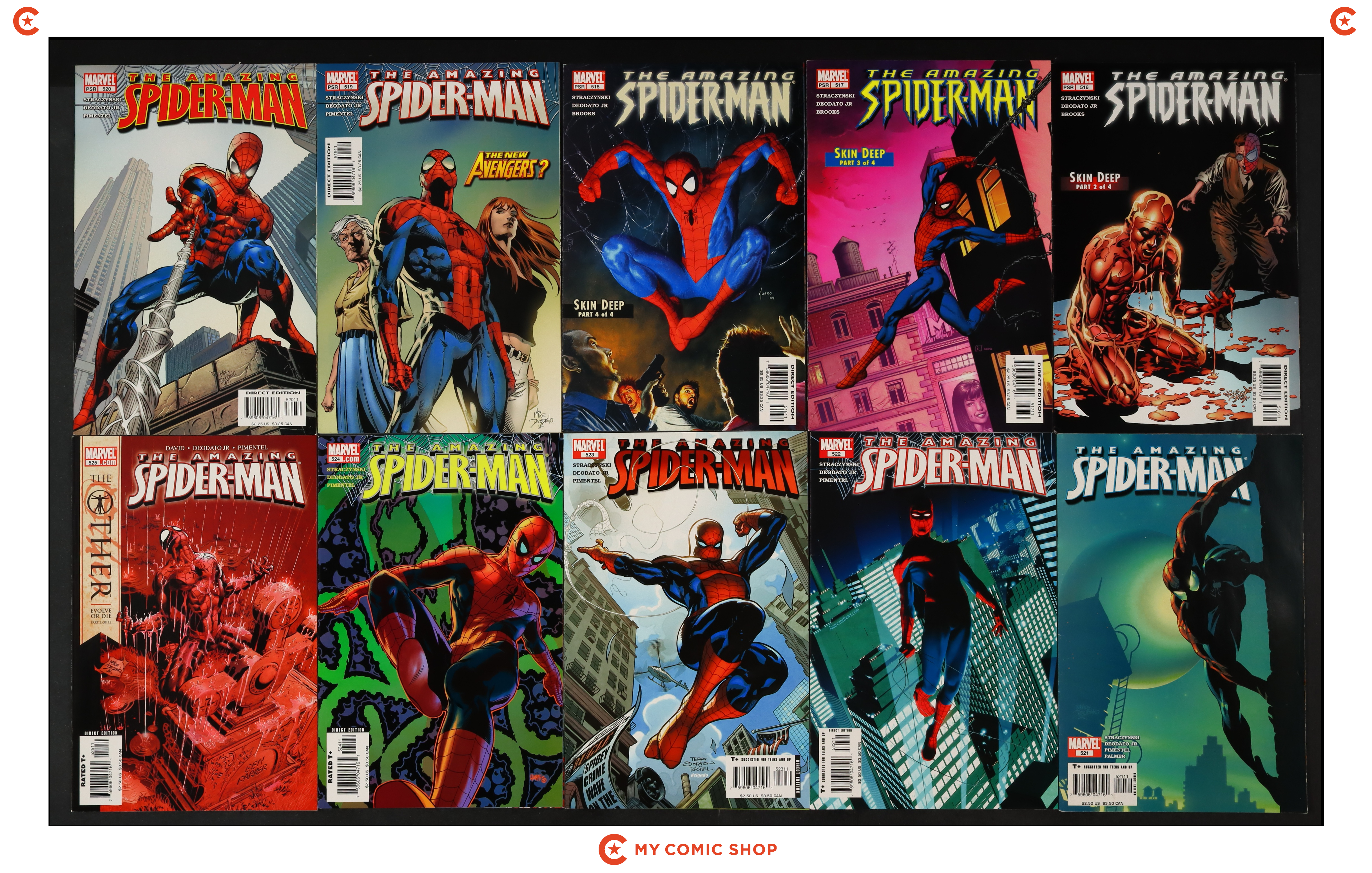 Issues 516-525A of Amazing Spider-Man (1998 2nd Series). Most will grade in the FN to VF range.