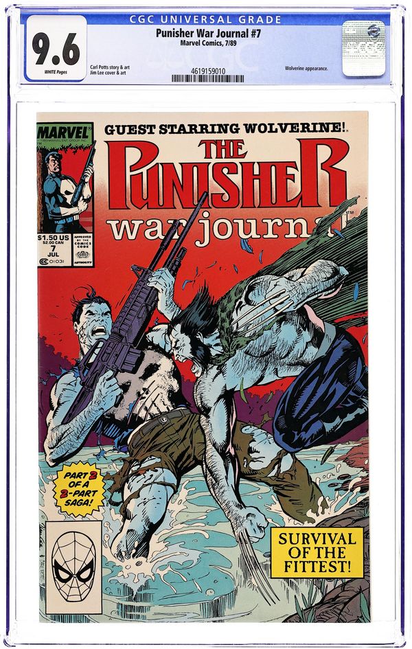 Ended Nov 24 9:08 PM CST Bid History 7 bids Winning Bid $39 Direct Edition. Cover art by Jim Lee and Carl Potts. Endangered Species, script by Carl Potts, pencils by Carl Potts and Jim Lee, inks by Jim Lee; Punisher and Wolverine stop fighting and focus their efforts on dinosaur-killing poachers in Africa. Punisher's Arsenal profile by Eliot R. Brown. 36 pgs. $1.50. Cover price $1.50. Grade: CGC 9.6 explanation of grade Condition: Used (collectible)