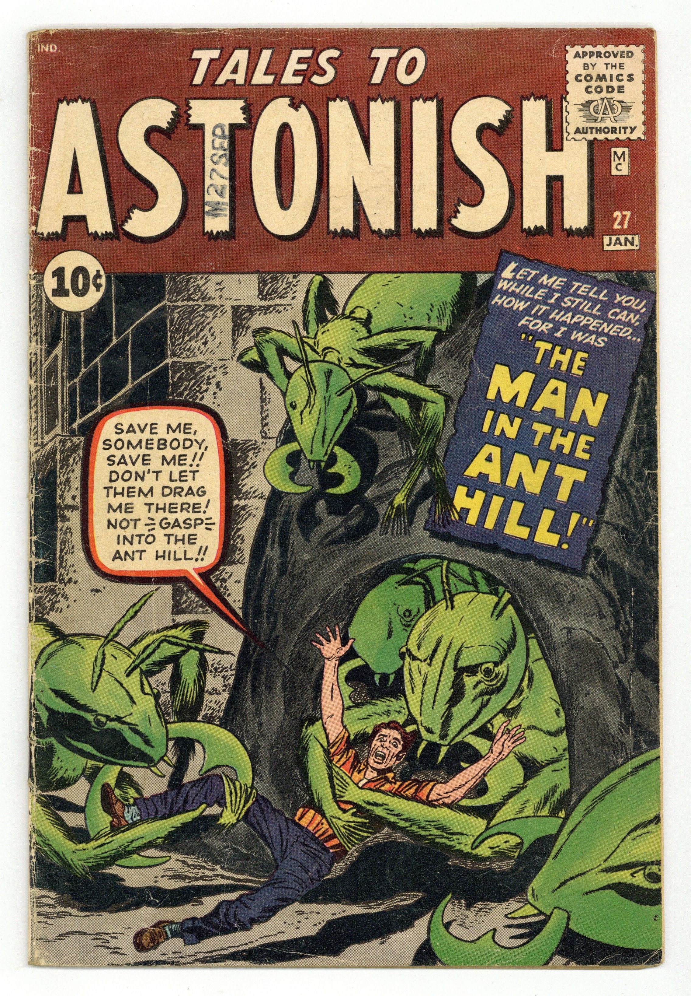 Cover by Jack Kirby and Dick Ayers. The Man in the Ant Hill!, art by Jack Kirby and Dick Ayers; Henry Pym invents a shrinking serum, but is trapped in an ant hill when he tests it. Trouble Bubble text story, art by Joe Maneely. Mirror, Mirror, on the Wall..., art by Don Heck; Bill Carter purchases a mirror for his wife's birthday; It turns out to be cursed and she falls under the control of an undead sorceror until the mirror is broken. The Talking Horse, art by Bob Forgione; The horse Silverstreak convinces the abusive jockey Barney to bet on them winning the next race. Dead Planet!, script by Stan Lee, art by Steve Ditko; A warrior race conquers world after world, but on one of them there seems to be life but their warrior can find none and dies of loneliness. 36 pgs., full color. $0.10. Cover price $0.10. Grade: GD/VG 3.0 explanation of grade Condition: Used (collectible)