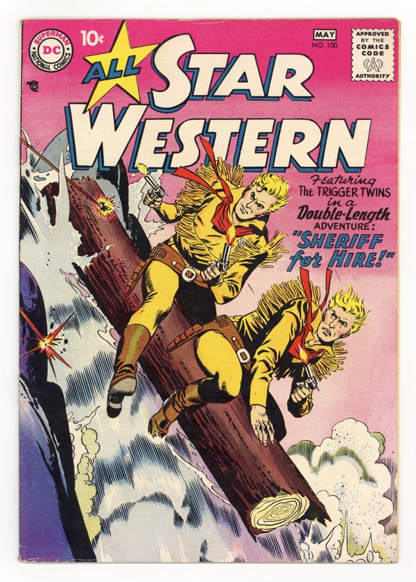 Ended Oct 27 2025 Bid History 4 bids Winning Bid $15 Edited by Julius Schwartz. Cover by Carmine Infantino and Joe Giella. Stories by Robert Kanigher, Carmine Infantino, Joe Giella, John Broome, Howard Sherman, Gil Kane, and Frank Giacoia. Tales of the Old West starring such characters as the Trigger Twins, Foley of the Fighting 5th, and Johnny Thunder. Odd Indian Nicknames article. 36 pages, full color. $0.10. Cover price $0.10. Grade: GD/VG 3.0 explanation of grade Condition: Used (collectible)