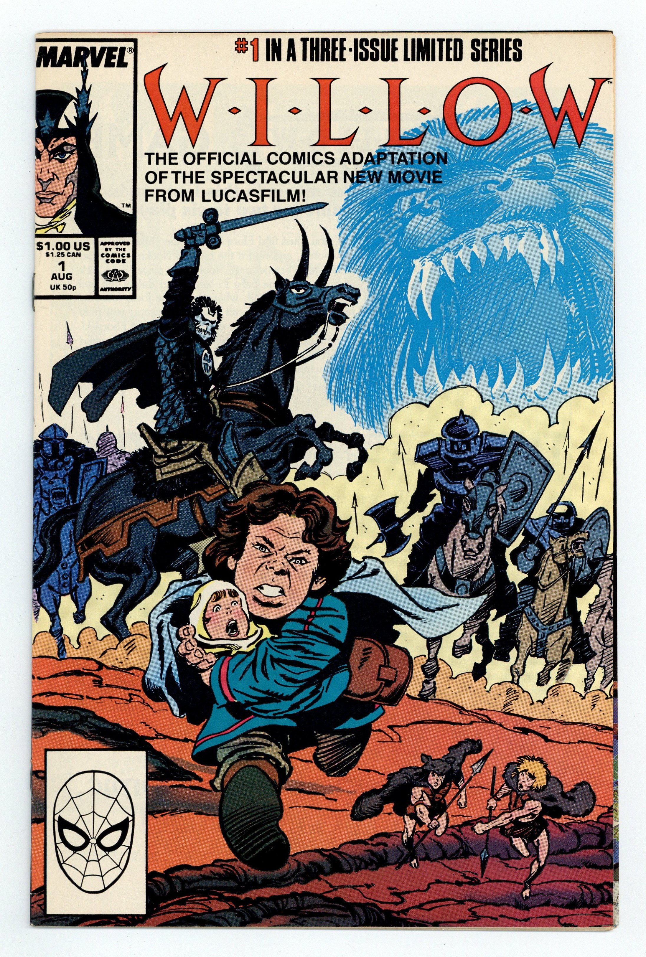 Starts Feb 2 Direct Edition. Marvel Comics' official comic adaptation of the 1988 movie "Willow." In this issue, Willow is given the task of delivering a child to the Daikini Crossroads, not knowing that the child has a great destiny and that his task will prove more difficult than imagined in part one of this adaptation. Script by Jo Duffy and art by Bob Hall & Romeo Tanghal. Cover price $1.00. Grade: FN 6.0 explanation of grade Condition: Used (collectible)