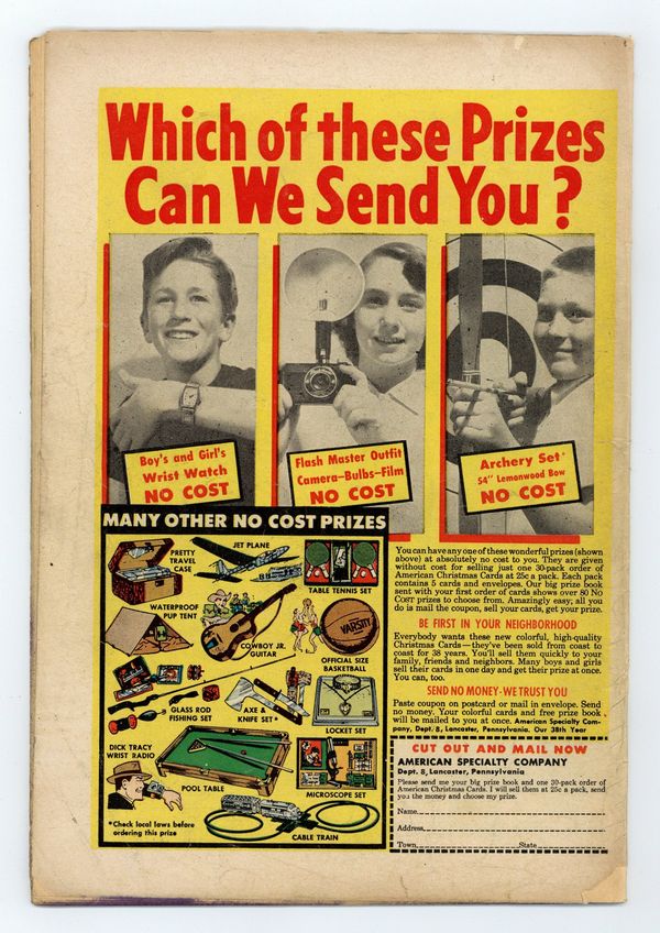 Cover art by Carl Burgos. The Man with No Face!, art by Robert Q. Sale. At the Stroke of Midnight!, art by Reed Crandall. The King of the Lions text story. The Only Woman! A Knock at the Door, art by Bob Powell. Something Strange about Smithtown!, art by Joe Certa. When They Wake Up!, art by Steve Ditko. 36 pgs. $0.10. Cover price $0.10. Grade: GD 2.0 explanation of grade Condition: Used (collectible)