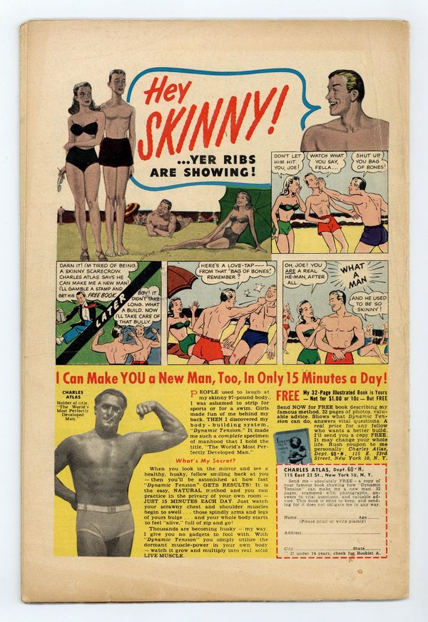 Cover art by Fred Kida. "The Eighth Wonder of the World," art by Richard Doxsee; Four conmen come up with an idea to dig up a giant that they plant in the earth and exhibit it to make money but they disturb a real giant with their scheme. "Only One Returned," art by John Forte; Two men descend into a cave shaft and one plots to dispose of the other so that he can marry his girlfriend; He cuts the rope and the other man falls into the river. "The Swami's Secret," art by Bob Bean; A mind-reading swami is undone when he comes across an individual he believes is an alien preparing to invade; He signs a confession to the police that he has been swindling wealthy clients for years but thinks the occasion is important enough to reveal his secret ability. "The Second-Hand Man!", art by Ed Winiarski; When a law-abiding man buys a used car that had belonged to an executed gangster, he finds himself behaving in reckless and aggressive ways. "The Missing Tooth" text story. "The Missing Sun," script by Carl Wessler, art by Matt Fox; A giant insect blots out Earth's sun and even more giant creatures save Earth by getting the insect to leave. "Bewitched!", art by Bob Powell; The book of Genda, a yogi fanatic, holds a town paralyzed until a man's glasses slip off his face and light magnified through one of the lenses burns up the pages. 36 pgs., full color. Cover price $0.10. Grade: GD/VG 3.0 explanation of grade Condition: Used (collectible)