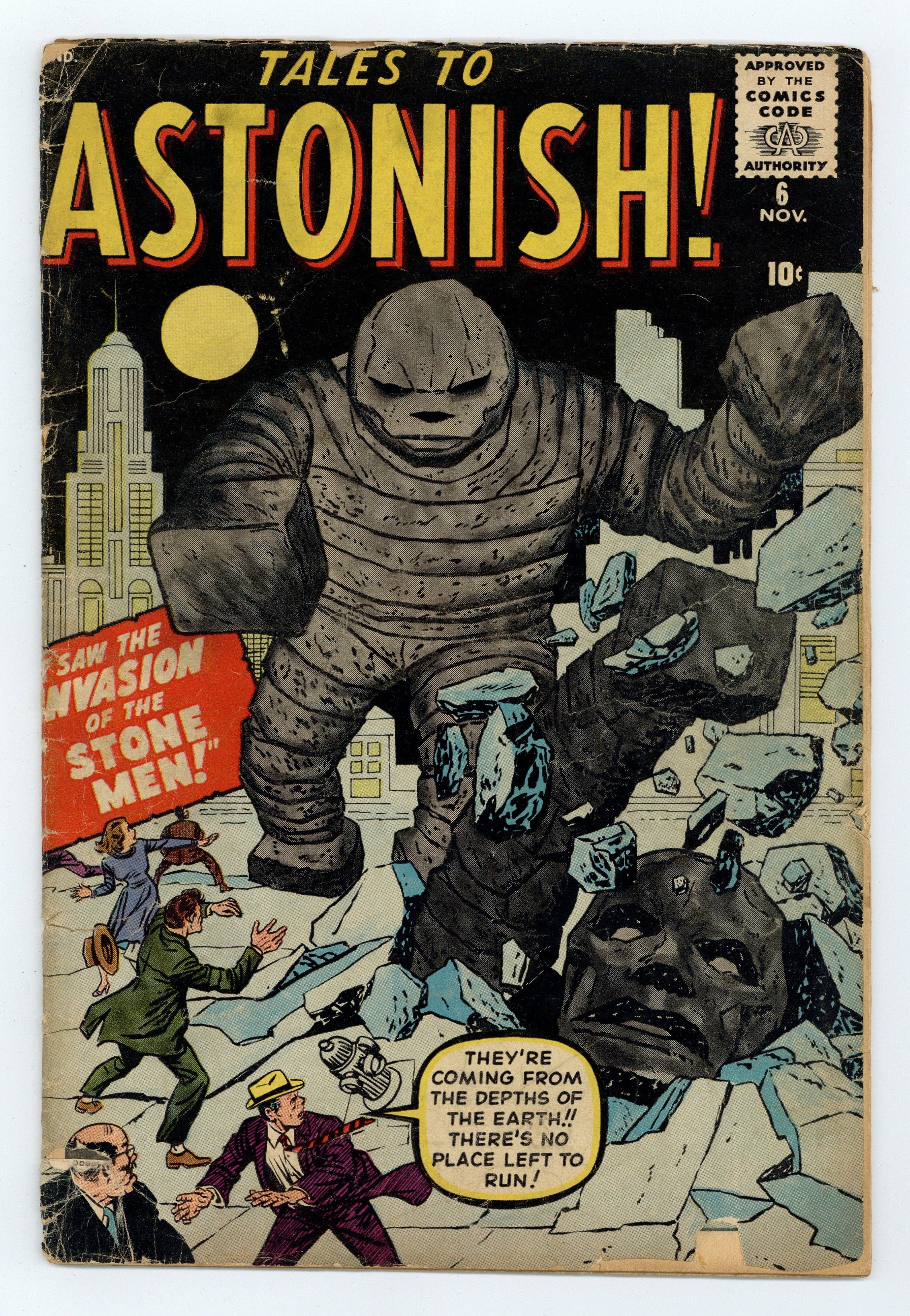 Cover by Jack Kirby. I Saw the Invasion of the Stone Men, art by Steve Ditko; Stone men rise out of the ground and set off a panic. Patent Pending text story. I Was the Man Under Glass!, art by Joe Sinnott; An arrogant businessman becomes governor of an alien planet and lives in an oxygen-filled dome, forbidding the natives from entering. I Laughed at the Great God, Pan!, art by Jack Kirby and Christopher Rule; A man with his date at the museum laughs at the painting of Pan; The museum guard chastises him for it. I Became a...Human Bomb!, art by Paul Reinman; A criminal sneaks aboard an experimental nuclear missile planning to hijack it and sell it to the Soviets. I Was a Prisoner of the Living Statues!, art by John Forte. 36 pgs., full color. $0.10. Cover price $0.10. Grade: FR/GD 1.5 explanation of grade Condition: Used (collectible)