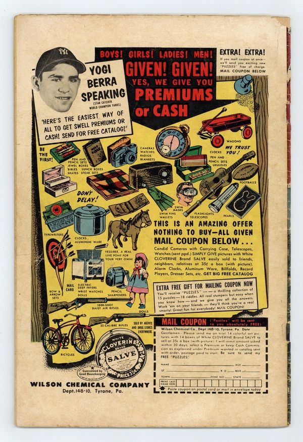 Cover art by Bill Everett. Wheels of Doom!, script by Carl Wessler, art by Manny Stallman; Two old men find that they lose forty years when they ride motorcycles. Someone in the Flames, art by Dick Ayers; A man thinks that he can control the Indians who work a plantation in Central America and take it over by posing as their god. The Girl Who Didn't Exist!, art by Tony DiPreta. Run for Your Life, script by Carl Wessler, art by Robert Q. Sale. Sir Archibald text story. The Hidden Hex!, script by Carl Wessler, art by Sam Kweskin. The Man in Grey!, art by Gray Morrow. Cover price $0.10. Grade: GD 2.0 explanation of grade Condition: Used (collectible)