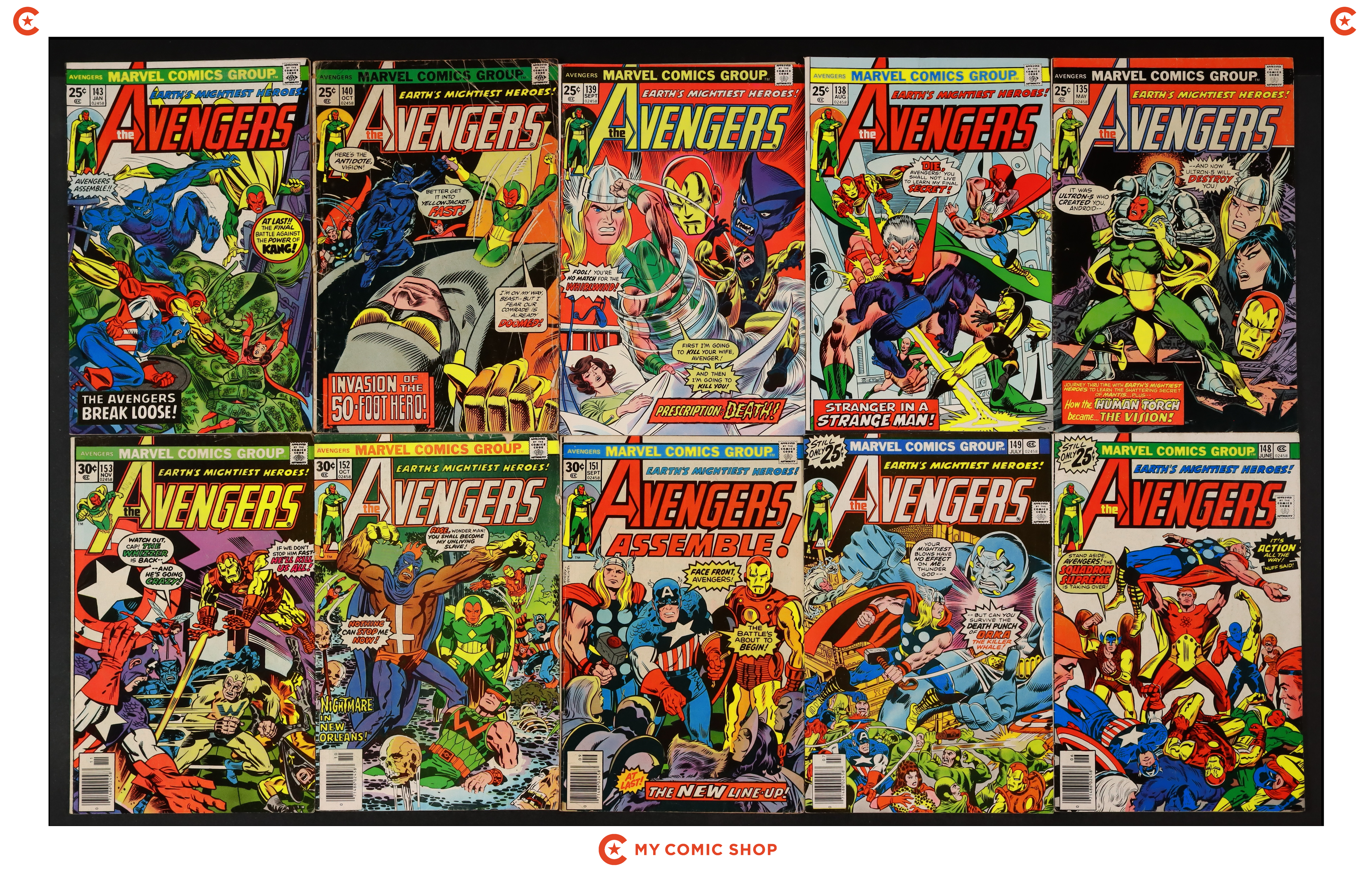 Issues 135, 138, 139, 140, 143, 148, 149, 151, 152, 153 of Avengers (1963 1st Series). Most will grade in the VG to FN range with #140 grading GD.