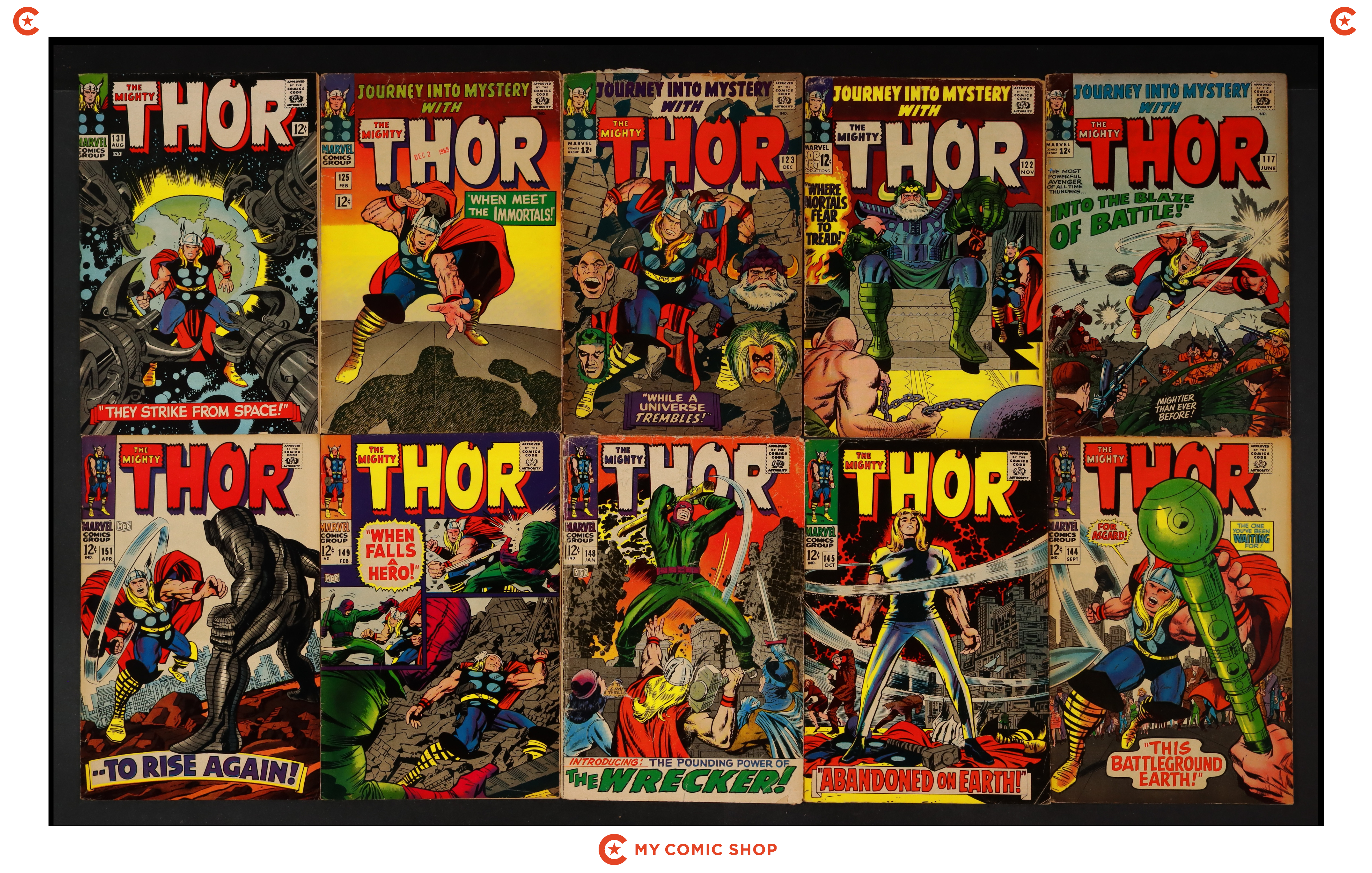 Issues 117, 122, 123, 125, 131, 144, 145, 148, 149, 151 of Thor (1962 Marvel 1st Series Journey Into Mystery). Most will grade in the GD/VG to VG/FN range, with #123 grading at PR (full spine split).