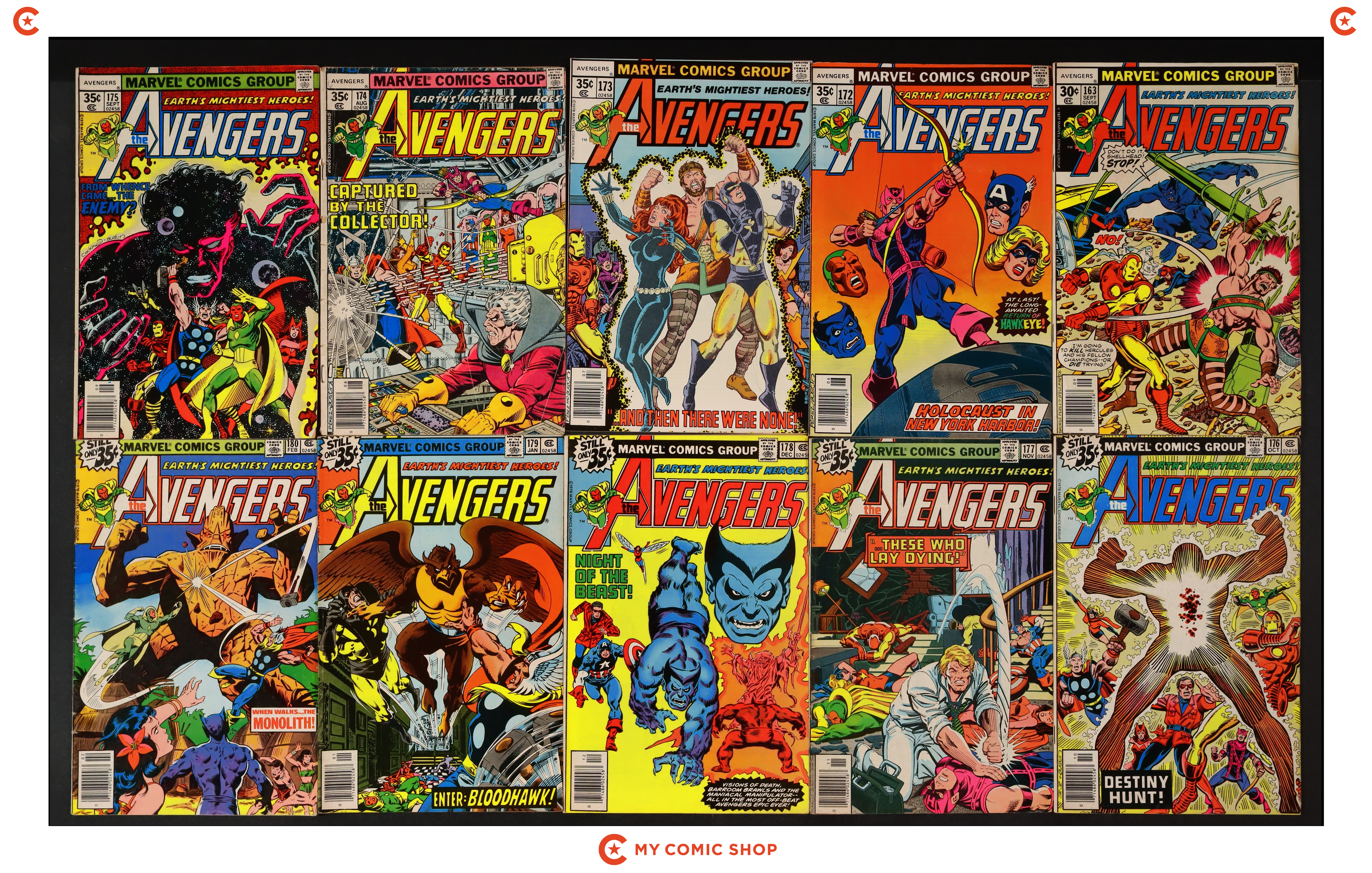 Issues 163, 172-180 of Avengers (1963 1st Series). Most will grade in the VG to FN range with #174 grading GD and #173 grading VF.