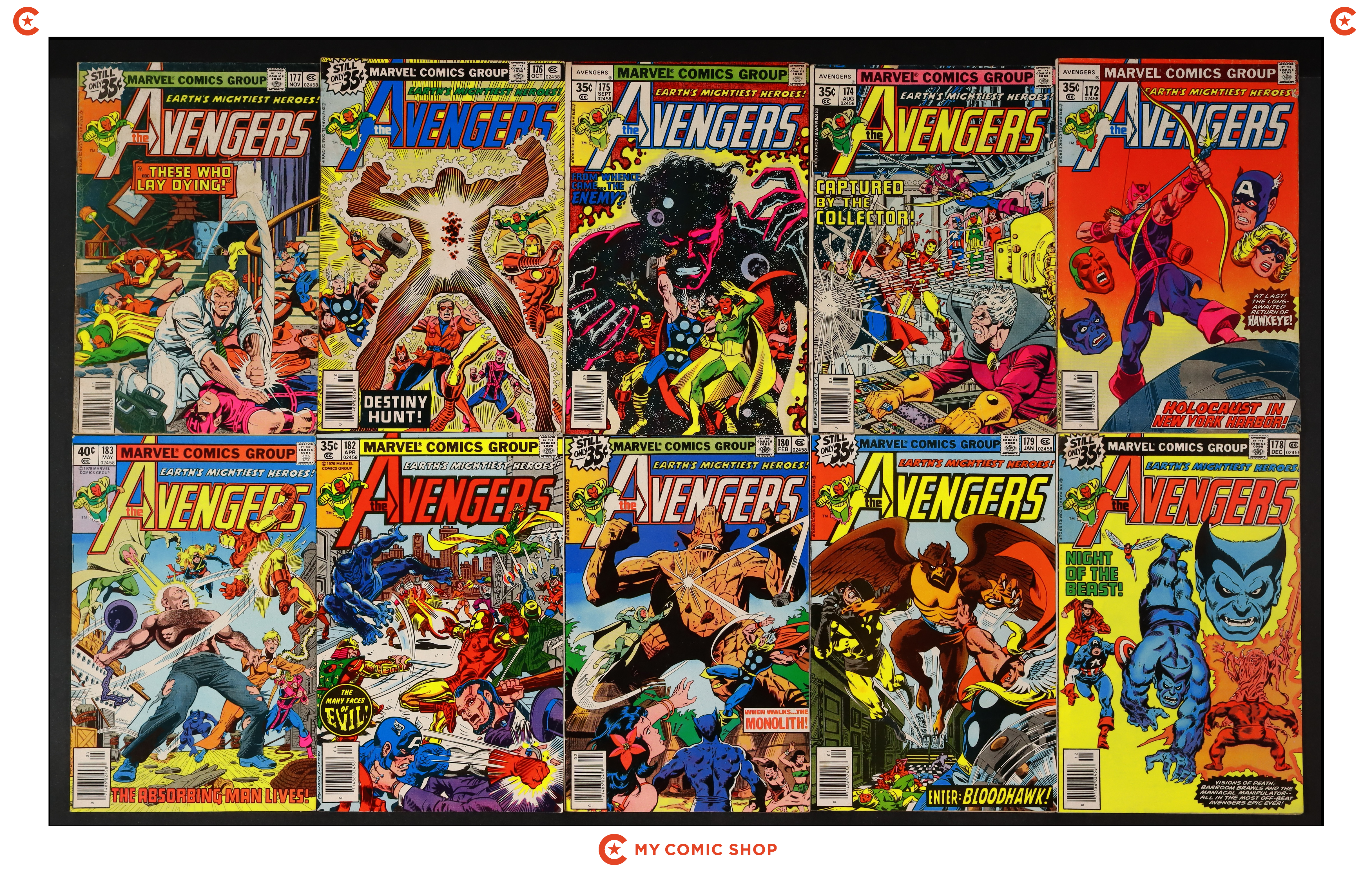 Issues 172, 174-180, 182, 183 of Avengers (1963 1st Series). Most will grade in the VG to FN range.