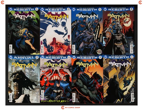 Issues 1A.D, 2A, 3B, 4A-7A and Annual 1 of Batman (2016 3rd Series). Most will grade in the VF to NM range.