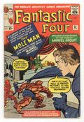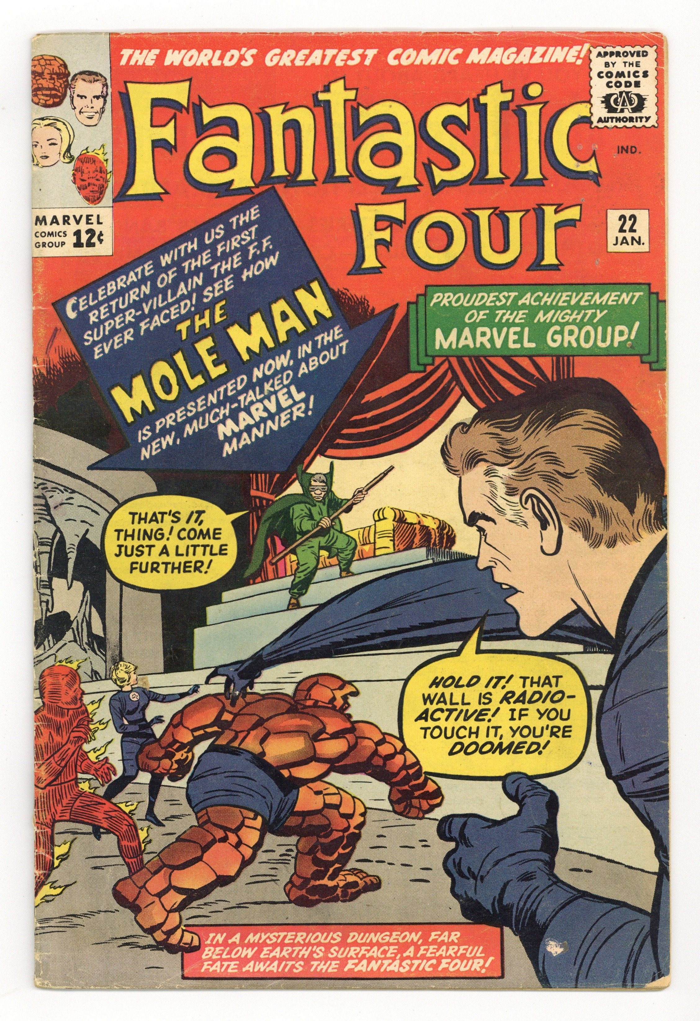 Ended Dec 1 8:16 PM CST Bid History 11 bids Winning Bid $80 Cover pencils by Jack Kirby, inks by Dick Ayers. The Return of the Mole Man!, script by Stan Lee, pencils by Jack Kirby, inks by George Roussos [as G. Bell]; The Mole Man arranges for the neighbors of the Fantastic Four to complain about their activities so they will be interested when they receive an ad for an island that is for sale; When they visit the island, the Mole Man is waiting for them. Letters to the editor from comics writer Roy Thomas, comics artist Dave Cockrum, Wayne Howard (the comics artist?), and Steve Erickson (the writer?). 36 pgs. $0.12. Cover price $0.12. Grade: VG- 3.5 explanation of grade Condition: Used (collectible)