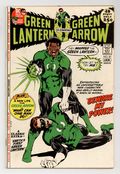 Giant-size issue. Cover by Neal Adams. First appearance of John Stewart in Beware My Power, script by Denny O'Neil, pencils by Neal Adams, inks by Dick Giordano; When Guy Gardner is injured, the Guardians of the Universe instruct Hal Jordan to train another back-up, but John Stewart has different ideas about how to be a Lantern; When an attempt is seemingly made on the life of racist politician Jeremiah Clutcher, John Stewart figures out that the attack was faked and part of a cynical plot to get Clutcher elected president. What Can One Man Do?, script by Elliot Maggin, pencils by Neal Adams, inks by Dick Giordano; After Green Arrow witnesses the death of a young boy in a riot, he decides that he might be able to do more for his city as its mayor. Reprint back-up story: Earth's First Green Lantern!, (from Green Lantern 16), script by Gardner Fox, pencils by Gil Kane, inks by Murphy Anderson; Hal Jordan explains to Pieface why Abin Sur came to Earth in a spaceship when all Green Lanterns can travel thru space unaided. The Flash ad. 52 pgs., full color. $0.25. Cover price $0.25. Grade: VG 4.0 explanation of grade Condition: Used (collectible)