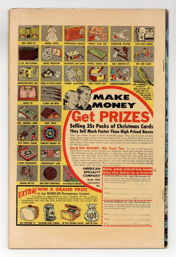 Cover pencils by Jack Kirby, inks by George Klein. "I Hear It Howl in the Swamp!", art by Steve Ditko; A fishing guide encounters an alien monster in the swamp, and after initial disbelief, the military plans to kill it; When two larger aliens arrive to take the thing away, they realize that it was only a lost child. "Lady Luck" text story. "I Was Captured by the Cyclops!", art by Don Heck; A man mentally transports himself to the past and becomes Sinbad, experiencing his encounter with the cyclops; He thinks that it was only a fantasy, but finds that he is still holding one of the cyclops' jewels. "The Mutants and Me!", art by Joe Sinnott; A man ignores his friend's theories about super-powered mutant humans, but after teleporting himself out of a locked safe he reconsiders. "Who Hides Beneath My Mask?", art by Dick Ayers; A burglar wears a rubber mask to avoid identification, but after his victim sees him, he discovers that his face has changed to match his mask. "The Luna Lizards Had Me Trapped!", pencils by Jack Kirby, inks by Christopher Rule; Human colonists on an alien world believe that they are being attacked by aliens, who, in fact, are trying to help them. 36 pages, full color. Cover price $0.10. Grade: VG- 3.5 explanation of grade Condition: Used (collectible)