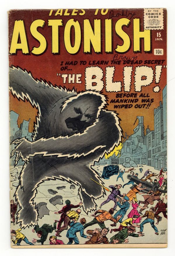 Cover by Jack Kirby and Dick Ayers. I Learned the Dread Secret of the Blip!, art by Jack Kirby and Dick Ayers; A power drain and radar anomaly is traced to a creature made of electricity hiding in a cave. The Free Ride text story. I Dared Enter the Forbidden World!, art by Don Heck; A white game hunter finds the legendary elephant's graveyard, hoping to make a fortune in ivory. I Am the Invisible!, art by Steve Ditko; A man threatens a witch unless she hands over two lenses which will make him invisible. I Defied the Curse of Tut-Ah-Anka!, art by Paul Reinman; A criminal hides from the police in an old Egyptian tomb, ignoring the warning of a curse. 36 pgs., full color. $0.10. Cover price $0.10. Grade: GD 2.0 explanation of grade Condition: Used (collectible)