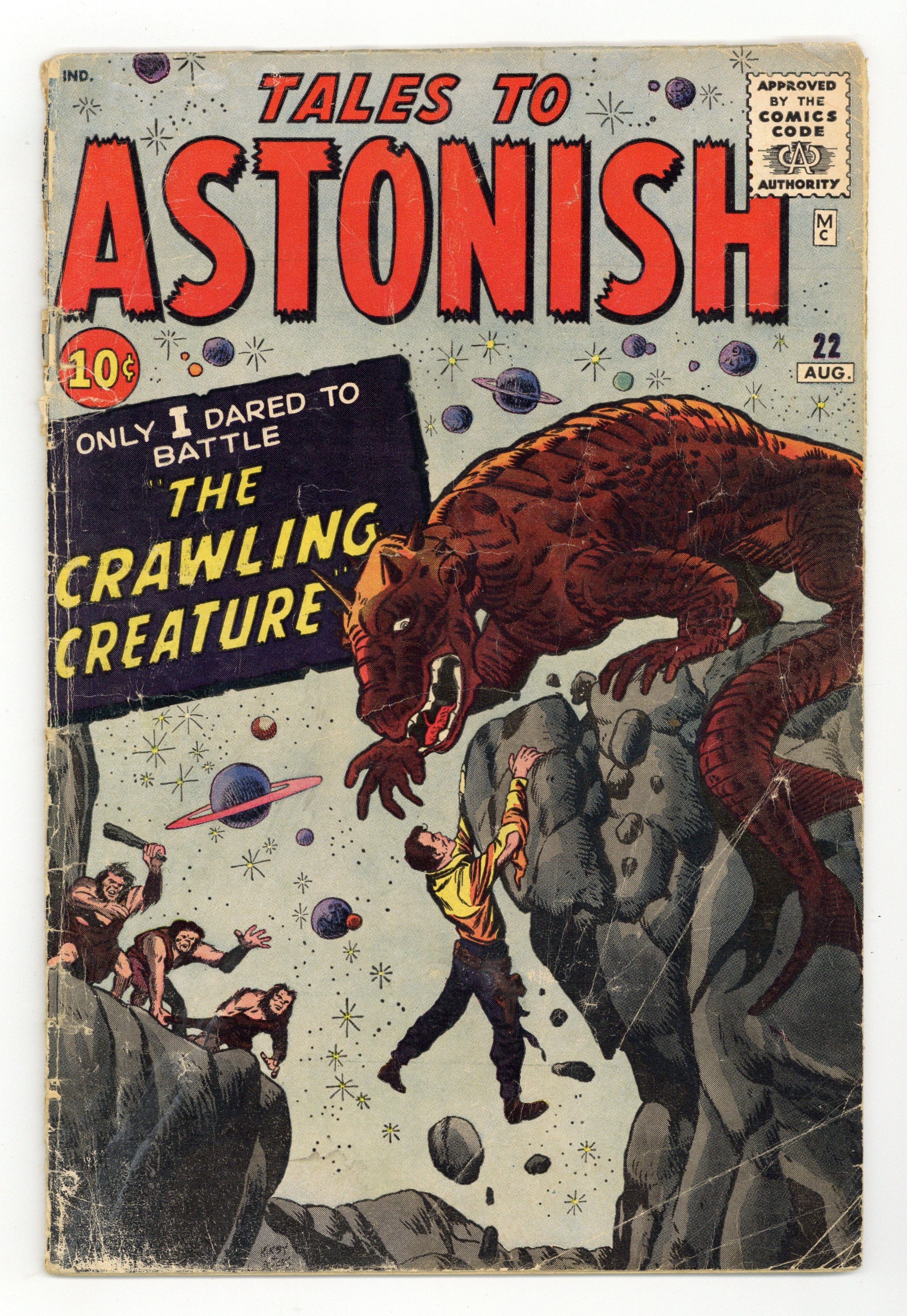 Cover by Jack Kirby and Dick Ayers. I Dared to Battle the Crawling Creature! Part 1, art by Jack Kirby and Dick Ayers; A teenager mans a drill-pod and finds a primitive tribe and a horrible creature beneath the surface. I Dared to Battle the Crawling Creature Part 2, art by Jack Kirby and Dick Ayers. Patent Pending text story. Help!, art by Don Heck; A writer buys a used typewriter that will only type a plea for help and an address, no matter what keys are struck. For Whom the Drum Beats!, art by Steve Ditko; A second-string drummer is envious of another member of the band, and so when he hears about a local gypsy, he goes to see her about improving his playing ability. 36 pgs., full color. $0.10. Cover price $0.10. Grade: FR/GD 1.5 explanation of grade Condition: Used (collectible)