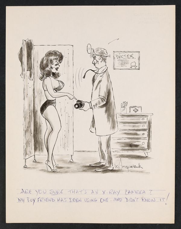 Original Art X-Ray Camera Pinup Gag Strip by Walter Fitzpatrick