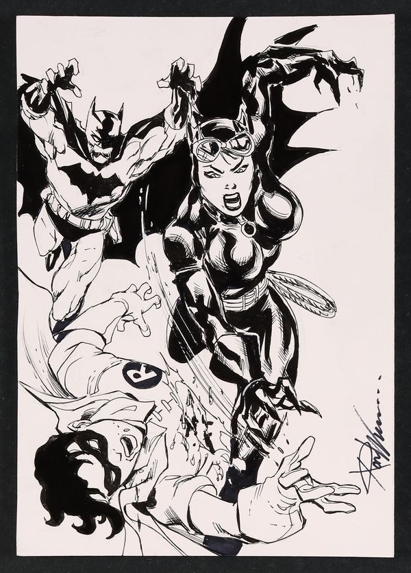 Catwoman vs. Batman and Robin Sketch by Ron WilliamsCatwoman vs. Batman and Robin Sketch by Ron Williams