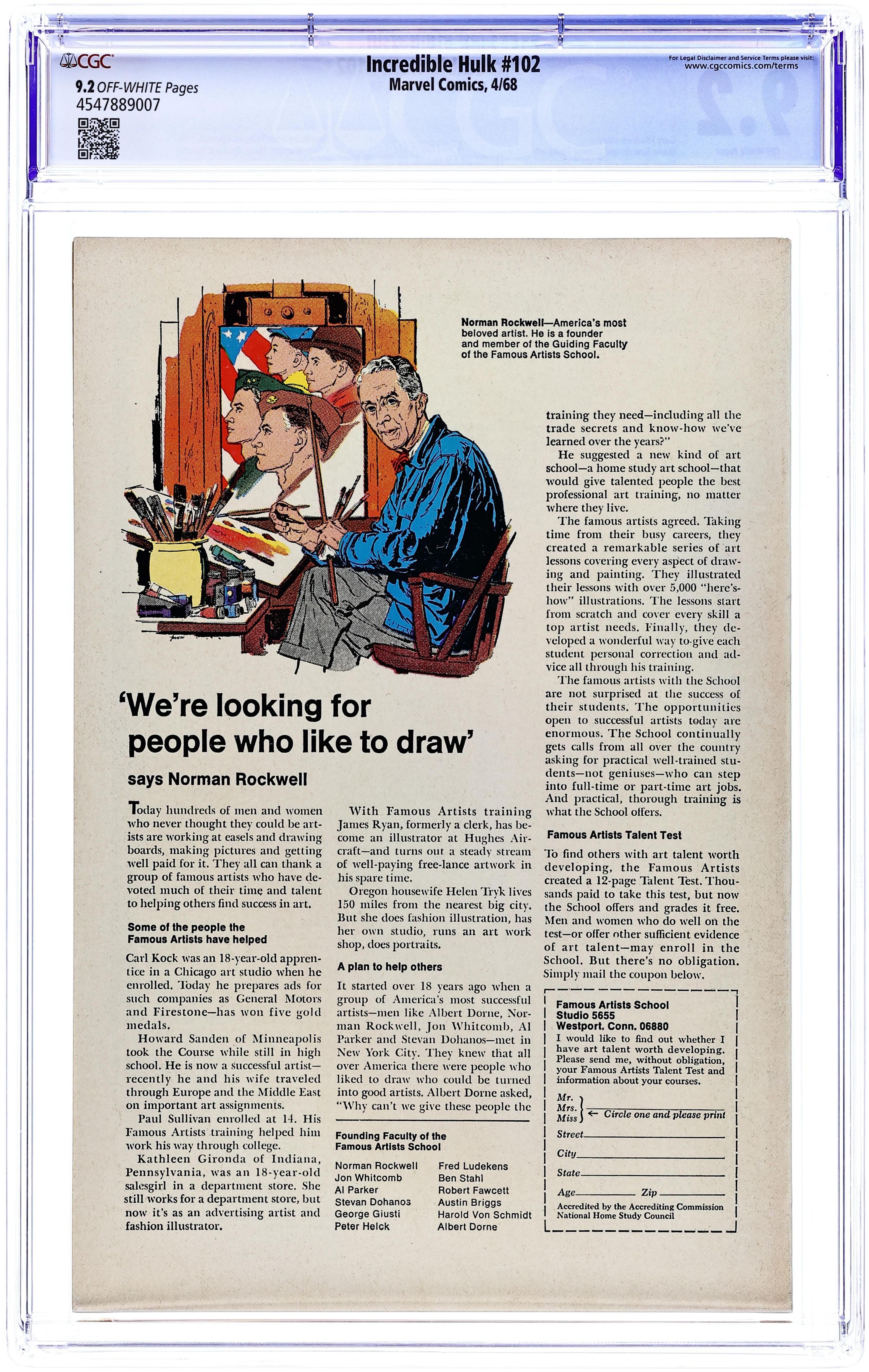 Tags: Marvel Legacy Numbering: Hulk (part 102), HulkIncredible Hulk (1962 Marvel 1st Series) 102 CGC 9.2