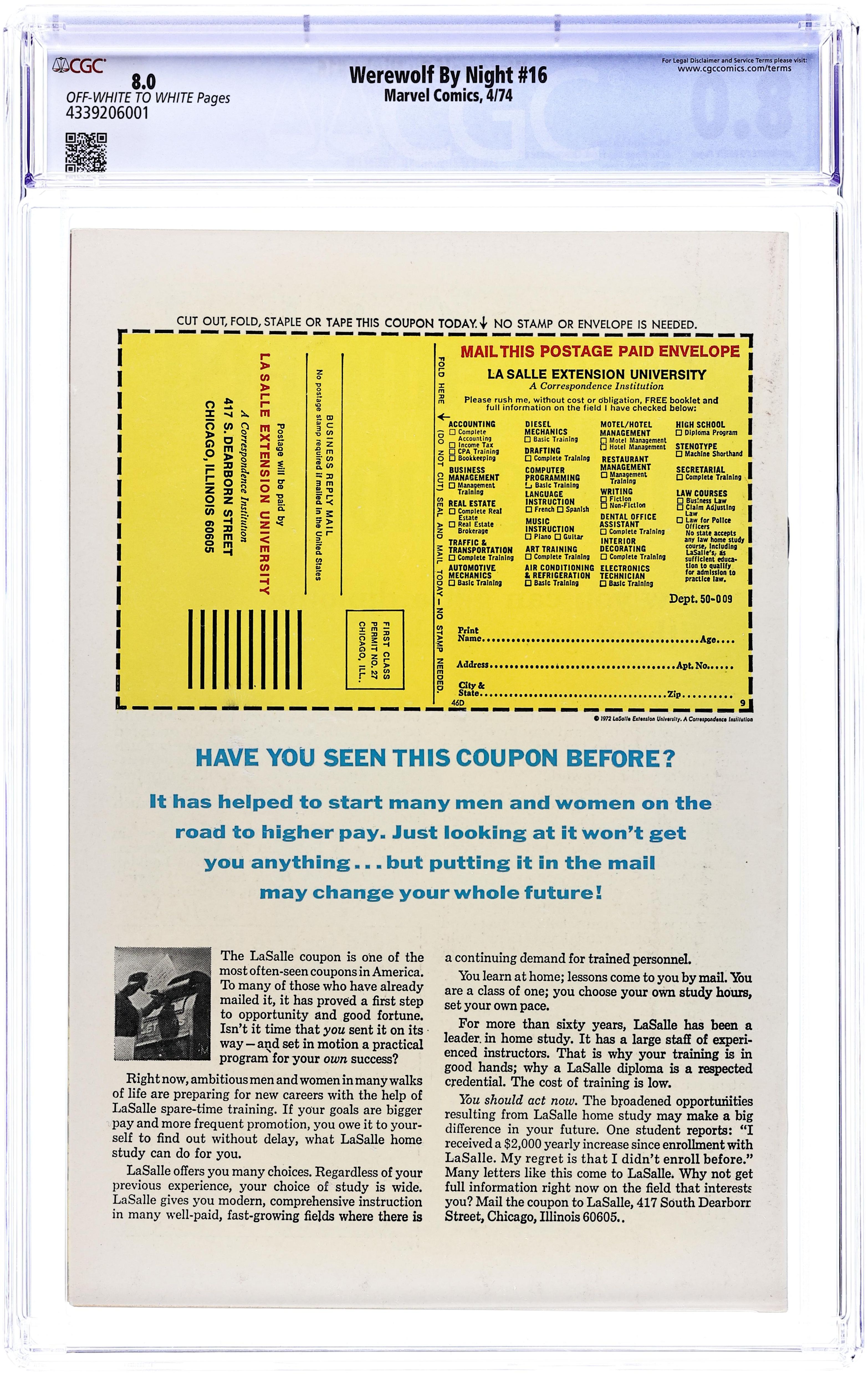 Werewolf by Night (1972 1st Series) 16 CGC 8.0
