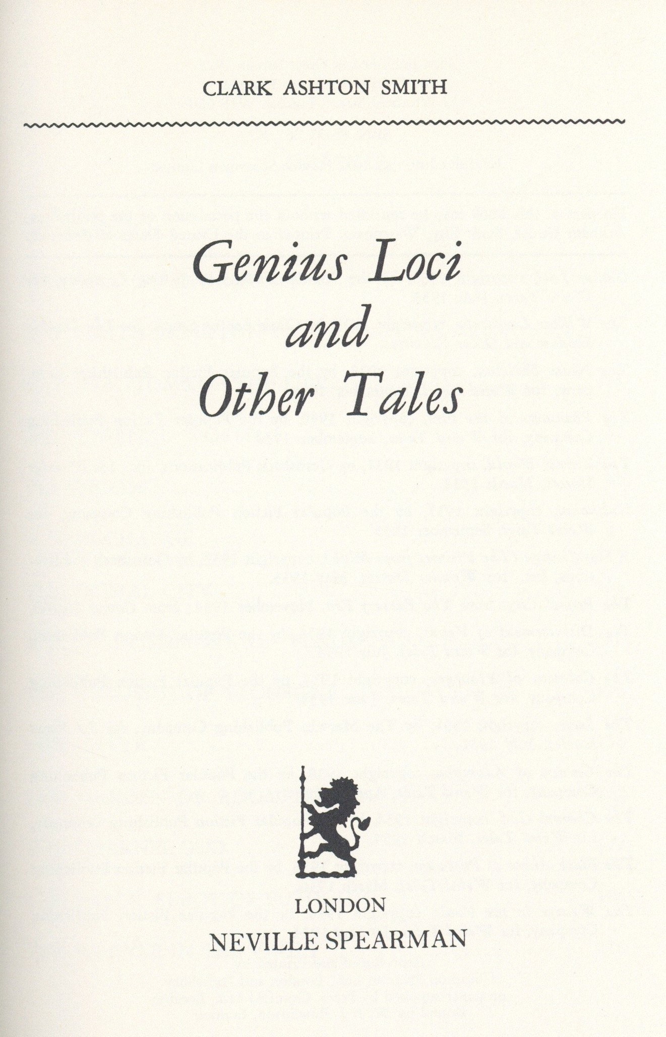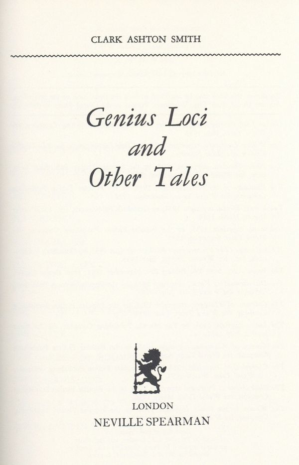Genius Loci and Other Tales HC (1972 Neville Spearman) Book