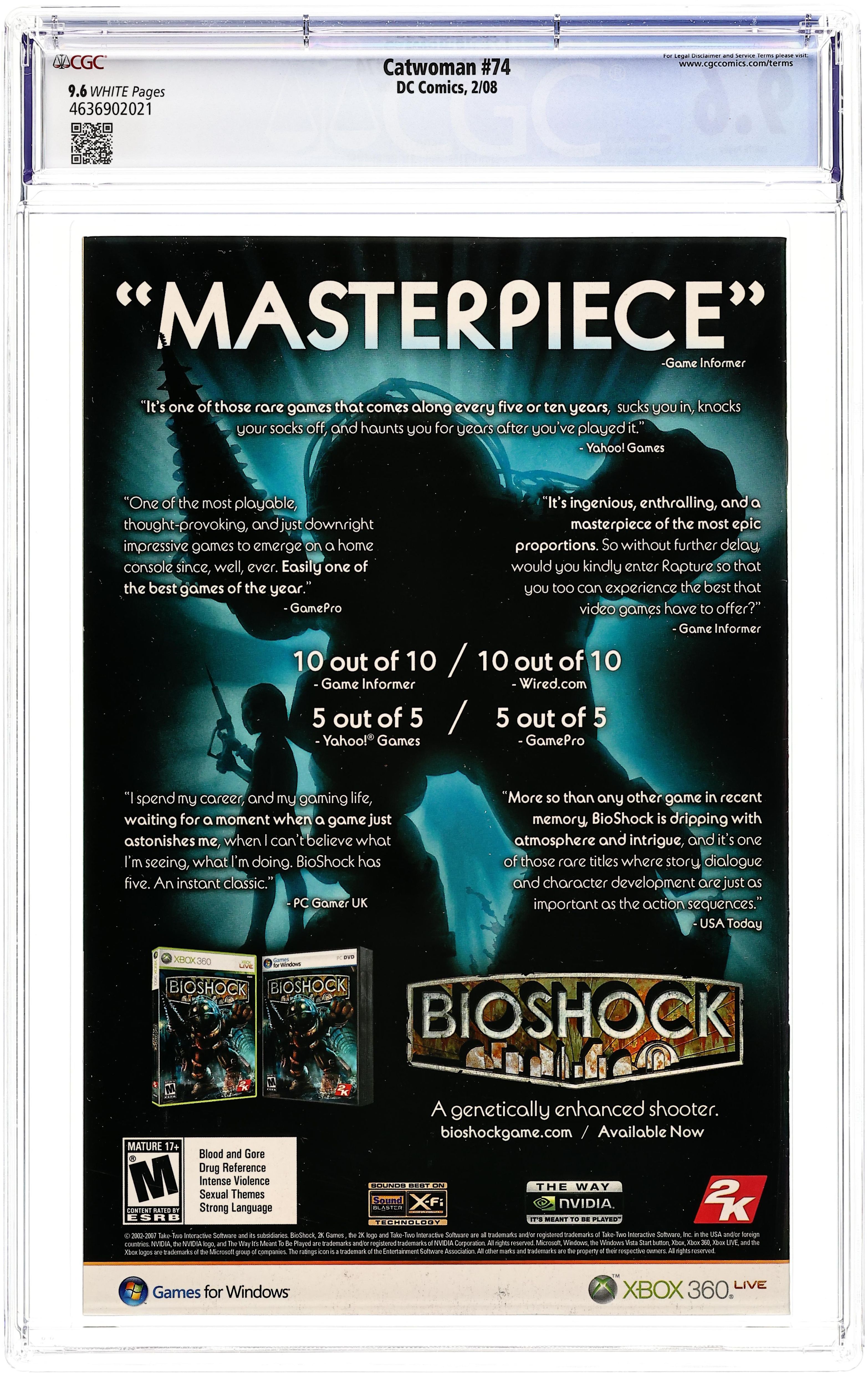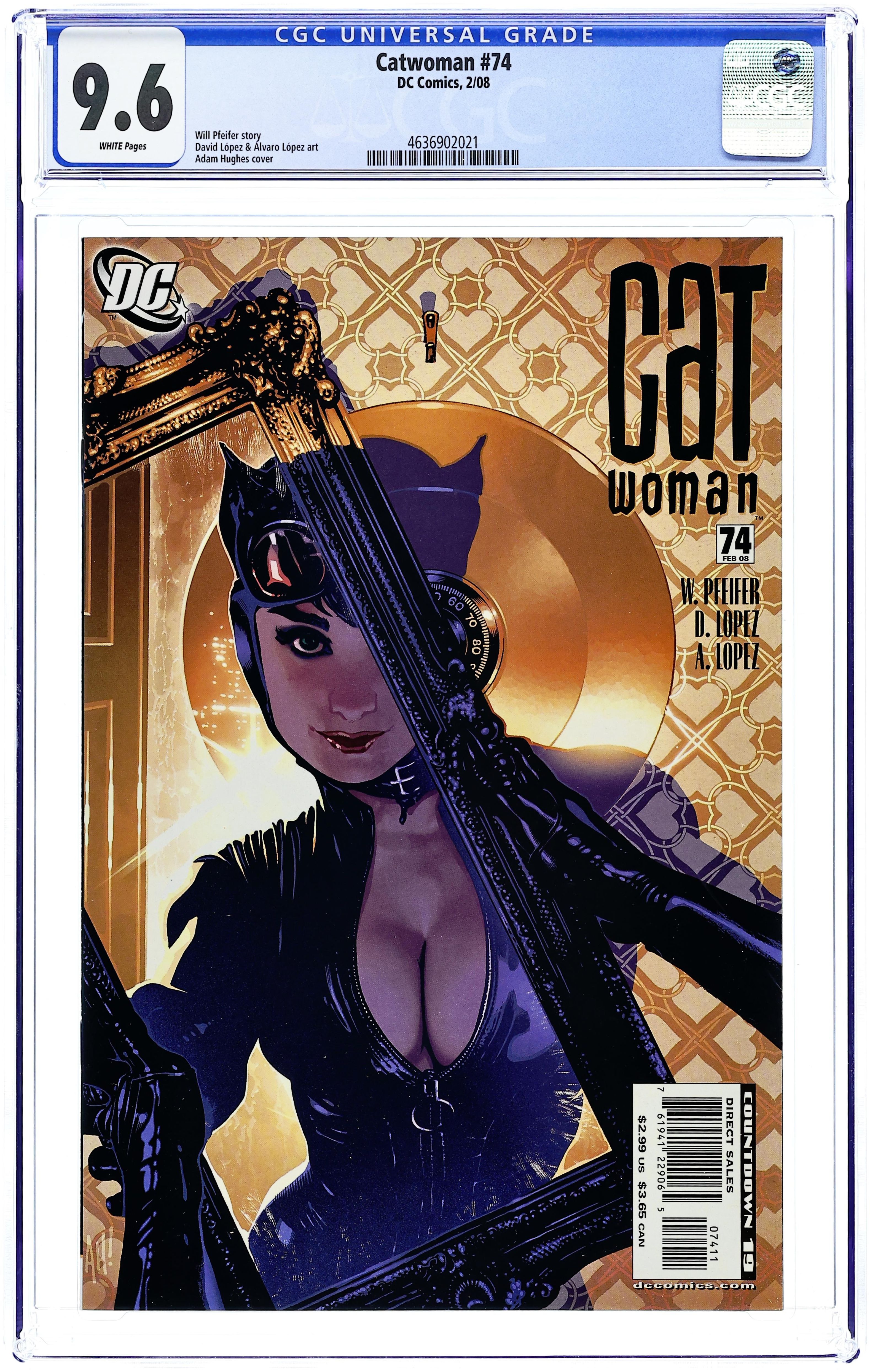 Written by Will Pfeifer Art by David Lopez & Alvaro Lopez Cover by Adam Hughes The new blood in Gotham City plans to wipe Catwoman off the streets! The only way to prove herself to the crime lords of Gotham is to pull off an impossible heist - before her cold-blooded counterpart does! Cover price $2.99. Grade: CGC 9.6 explanation of grade Condition: Used (collectible)