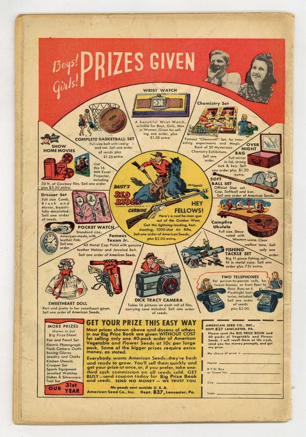 Starts Dec 8 Cover by Bob Lubbers. Edited by J.F. Byrne and William R. Shelton. Stories and art by Bob Lubbers, Cesare Avai, Joe Doolin, Frank Fermonetti, George Evans, John Celardo and Maurice Whitman. Aviation-themed adventure, combat and history tales from pioneering comics publisher Fiction House. Reporter Jane Martin tries to find the truth about a disgraced ex-airman's midair duel; King of the Congo gets the drop on crooked ivory hunters with the help of a planeload of monkeys; The ghost of a pilot's sister warns him about a German ruse to destroy his squadron. Captain Wings; Jane Martin; King of the Congo; Air Heroes of World War II; Phantom Falcon; Suicide Smith; Ghost Squadron. 52 pages, Full Color. Cover price $0.10. Grade: GD/VG 3.0 explanation of grade Condition: Used (collectible)