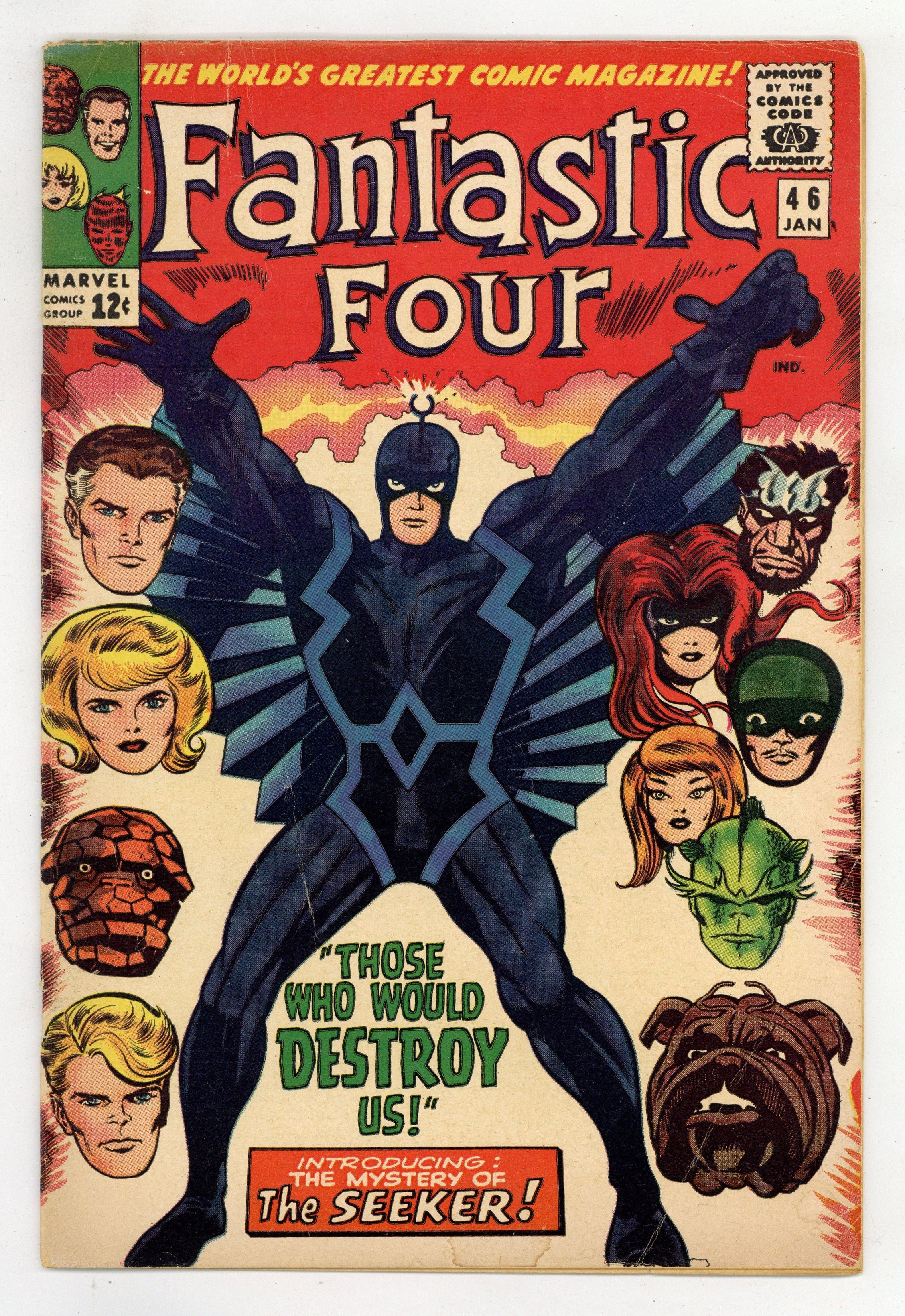 Ended Nov 10 8:07 PM CST Bid History 12 bids Winning Bid $57 Cover pencils by Jack Kirby, inks by Joe Sinnott. Second appearance of the Inhumans (first Black Bolt cover and full appearance) in Those Who Would Destroy Us!, script by Stan Lee, pencils by Jack Kirby, inks by Joe Sinnott; The FF battle the Inhumans; Triton is captured by the Seeker and the Inhumans teleport away; The FF are captured by the Seeker as they attempt to free Triton. Dragon Man appearance. 36 pgs. $0.12. Cover price $0.12. Grade: VG- 3.5 explanation of grade Condition: Used (collectible)