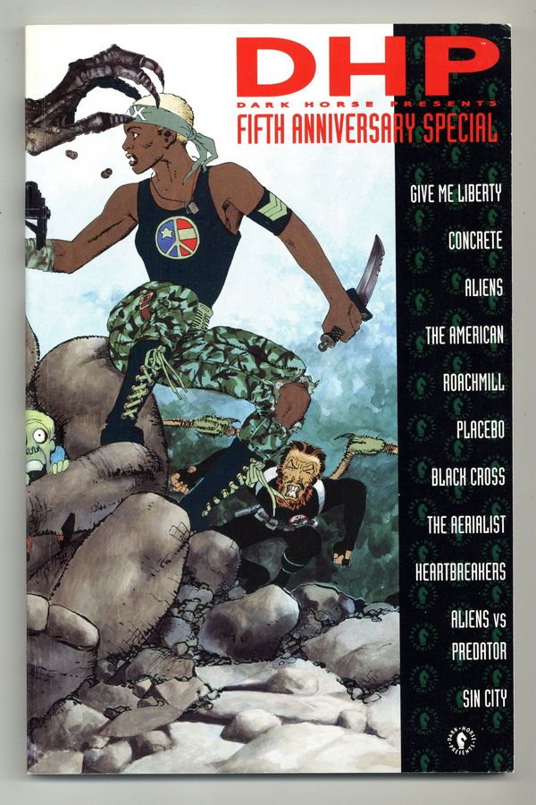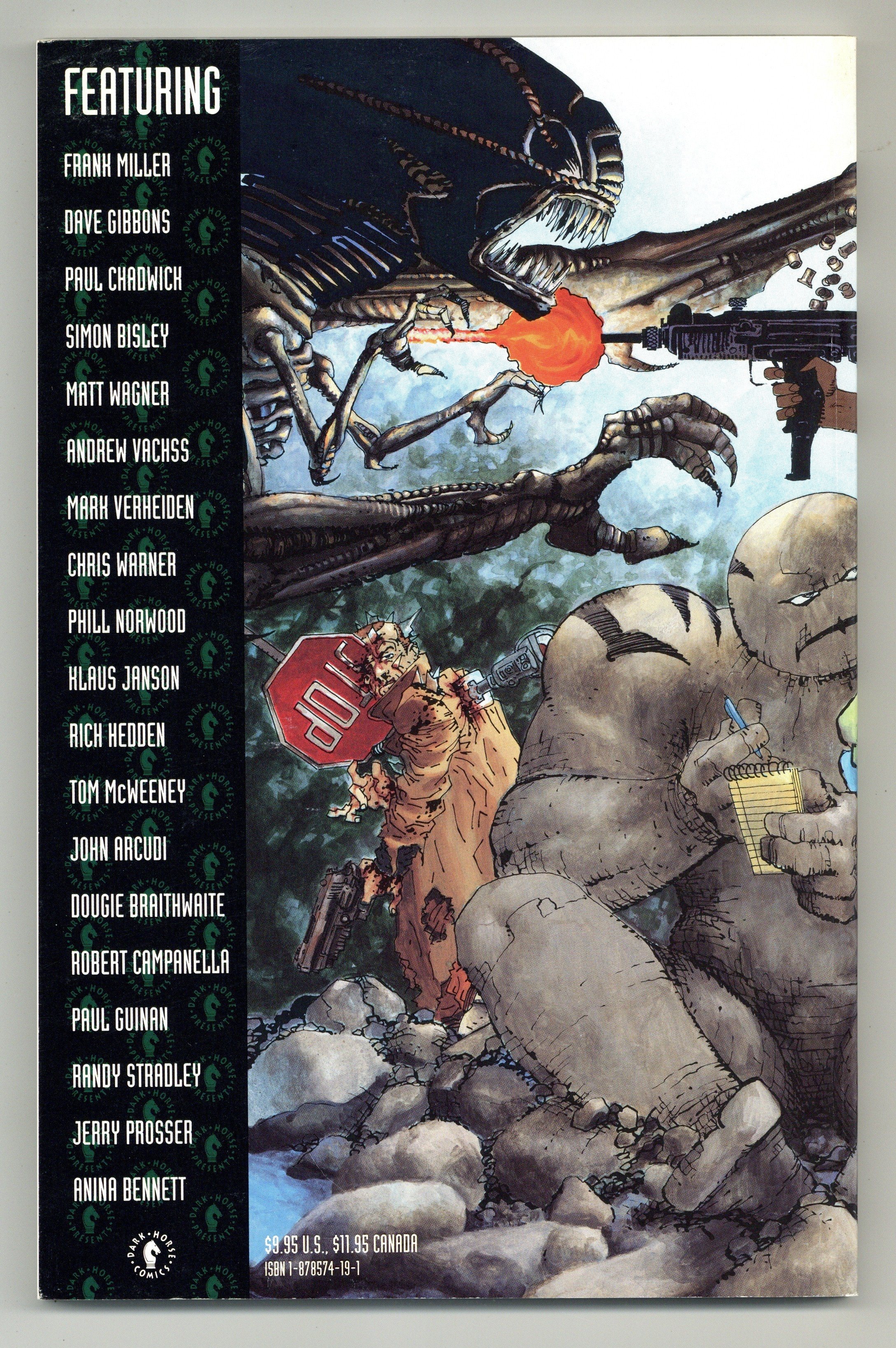 Includes Give Me Liberty written by Frank Miller and illustrated by Dave Gibbons; The American by Mark Verheiden, Dougie Braithwaite and Robert Campanella; Aliens by John Arcudi and Simon Bisley; Black Cross by Chris Warner; Concrete by Paul Chadwick; The Aerialist by Matt Wagner; and a special adaptation of an Andrew Vacchs story by Jerry Prosser and Klaus Janson; an epilogue to the Aliens vs. Predator series by Randy Stradley and Phill Norwood, as well first episodes of A Hard Goodbye by Frank Miller, and lots more!