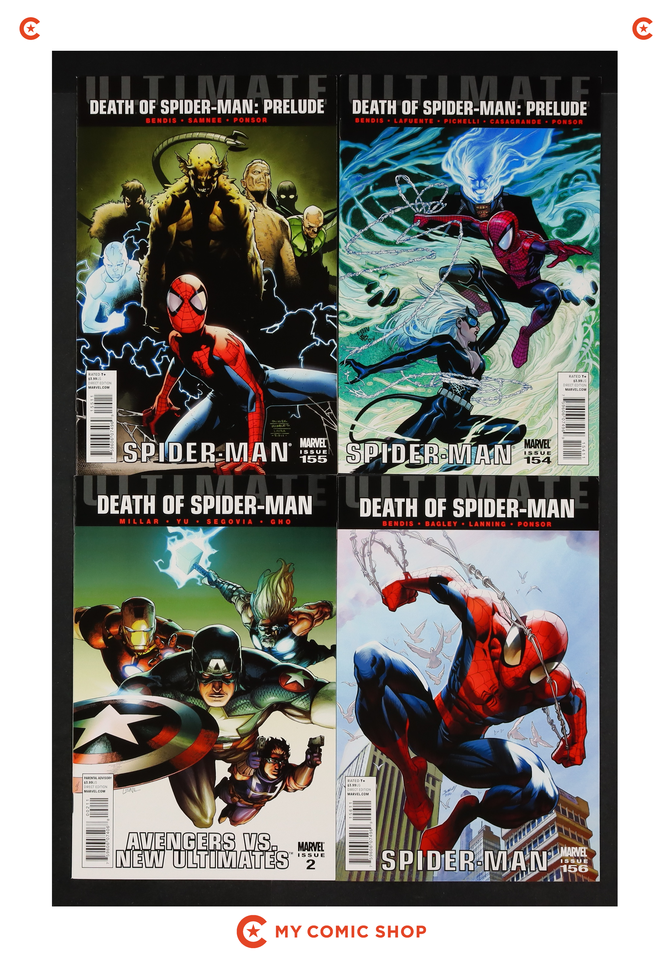 Issues 154A, 155A, 156A, of Ultimate Spider-Man (2009 2nd Series), and issue 2A of Ultimate Avengers vs. New Ultimates (2011 Marvel). Most will grade in the FN to VF range.